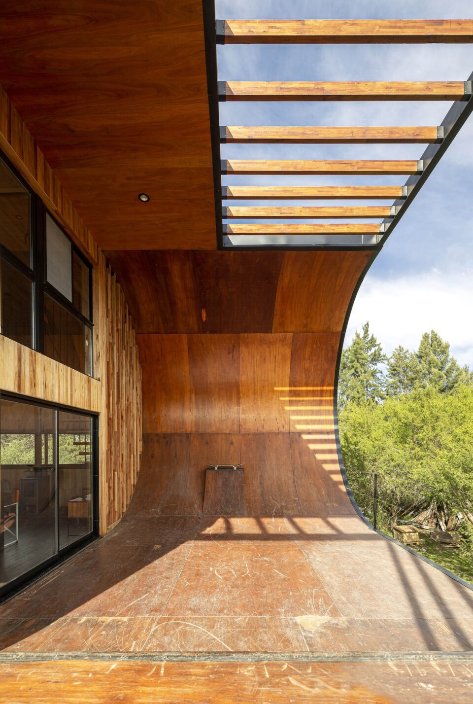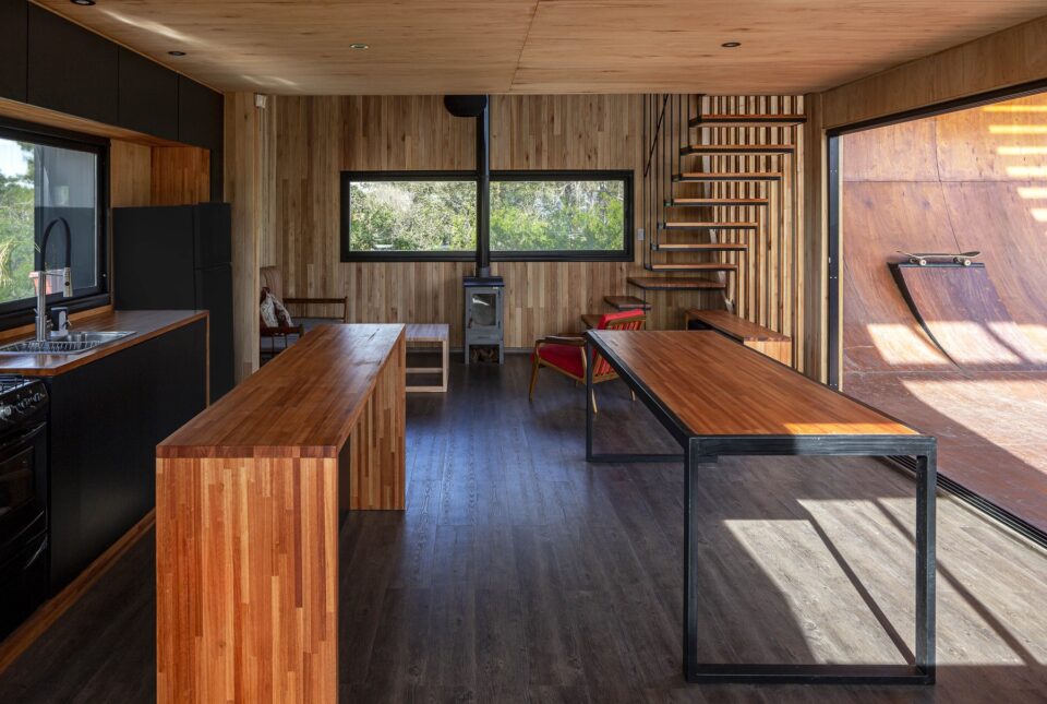 Când ai o pasiune și ești determinat să o urmezi, găsești calea cu orice preț. Pentru un pasionat de skateboarding, asta a însemnat să aibă o casă cu rampă de skateboarding. Sau mai exact, o rampă de skateboarding care să aibă și o casă. Arhitectul sud-american Macu Bulgubure a construit o casă pornind de la nevoia prorpietarului de a avea o rampă pentru skateboarding. A mers pe o variantă sustenabilă și a construit, cu un buget de circa 90.000 de dolari, o locuință sustenabilă, adaptată atât dorinței proprietarului, cât și riscurilor de inundații din zona respectivă. Situată într-o zonă cu risc crescut de indundații din Argentina – în insulele de lângă fluviul Parana, pe coasta Rosario, locuința are la bază piloni înalți din metal, înălțarea de la sol urmând să o protejeze în cazul unor inundații. În interior, spațiul este ocupat în principal de o bucătărie și de o cameră de zi cu vedere spre rampă, încălzite cu o sobă cu lemne. O scară din lemn duce la etajul superior, unde este o zonă de odihnă cu vedere panoramică spre exterior, cu ferestre imense încadrate de aceeași rampă. În exterior, elementul impozant rămâne rampa, construită pe toată înălțimea casei cu două etaje. Ea definește personalitatea și scopul casei Foto: CATERS NEWS / Caters News / Profimedia Distribuie articolul pe: