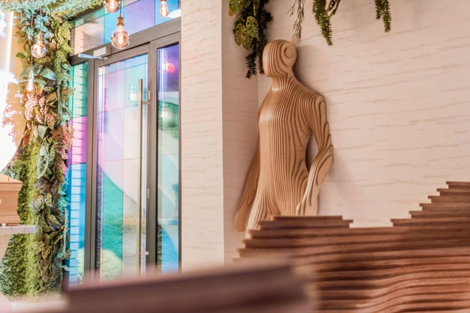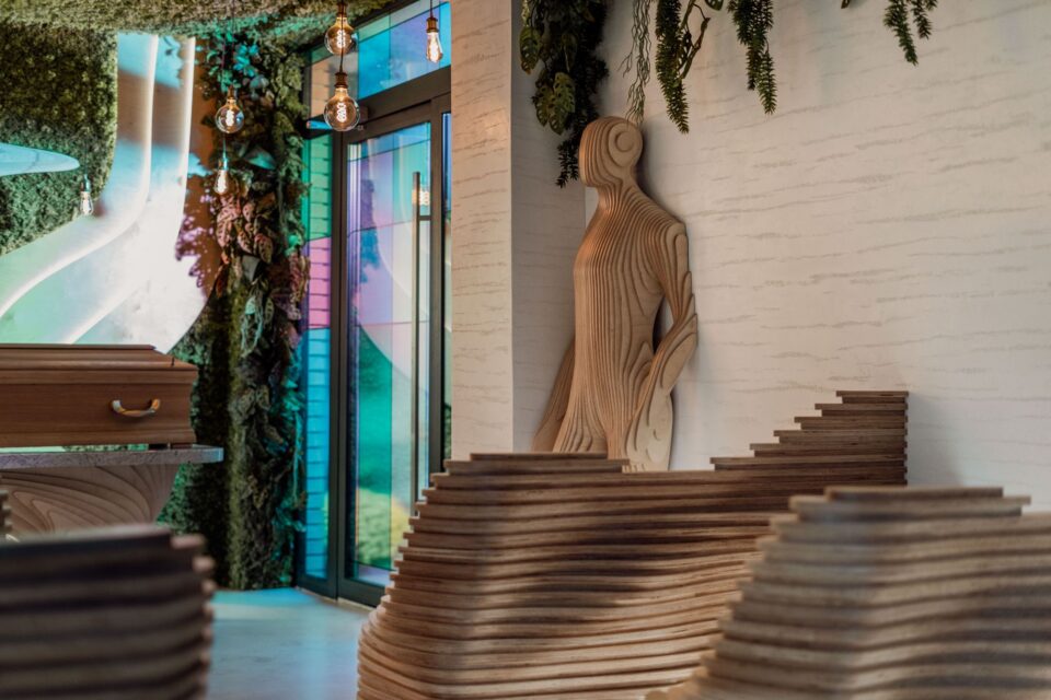 Exista experiențe care fac amintirile insuportabile și timpul apăsător, dar pe care viața nu le poate omite. O capelă – loc tradițional al despărțirilor cu adevărat irevocabile – caută să schimbe această paradigmă. Locația se află în Kraśnik (Polonia), unde arhitecții au reintepretat contemporan simbolurile tradiționale și, într-o reamenajare bazată pe design parametric, au construit un spațiu de contemplare și liniște personală. Capela Kraśnik a fost proiectată ca un spațiu contemporan, profund simbolic al despărțirii, în care arhitectura modernă și designul parametric coexistă cu valorile tradiționale, pentru a oferi o nouă perspectivă asupra ceremoniei de rămas bun, păstrând totodată respectul față de obiceiurile consacrate. O astfel de imagistică este puternic asociată cu durerea, suferința și pierderea. În schimb, am vrut să propun un spațiu care să nu întărească aceste emoții, ci să permită oamenilor să privească momentul despărțirii dintr-o perspectivă ușor diferită. De aceea, am abordat proiectul ca o metaforă pentru o călătorie, explică pentru casalux.ro arhitectul care a coordonat proiectul, Grzegorz Kłoda, de la GK-Atelier. În același timp, a fost important ca spațiul să nu fie supraîncărcat cu forme sau stimuli. Ar trebui să lase loc pentru liniște, contemplare și reflecție personală. Interiorul a fost menit să fie cald și liniștitor, în timp ce formele arhitecturale ghidează ușor gândurile vizitatorilor departe de experiența imediată a durerii către ideea căii pe care fiecare dintre noi o parcurge. Inovație printr-un nou limbaj al arhitecturii acestui moment În proiect a fost utilizată arhitectura parametrică, care a conferit spațiului o moliciune naturală, o fluiditate și o profunzime emoțională. Astfel, interiorul a dobândit un ritm organic, în care toate elementele, de la șezuturi până la catafalc, se dispun într-un ansamblu armonios, sculptural. Forma modernă nu înlocuiește sensurile tradiționale, ci le subliniază subtil, adăugându-le o dimensiune contemporană, simbolică. Liniile parametrice, lumina blândă și arhitectura sculpturală au fost completate de vegetație, ca simbol al naturii și alinării și care îmblânzește geometria și spațiul. Locul este astfel impregnat de viață și continuitate, fapt care, în contextul despărțirii definitive, capătă o semnificație profundă. Când ne luăm rămas bun de la o persoană apropiată, apare un moment natural de pauză. Poate că gândirea la propria noastră cale aici pe Pământ într-un astfel de moment ne poate duce la reflecții mai profunde. Uneori ne poate încuraja să reparăm ceva în viața noastră, alteori să tragem concluzii semnificative, mai spune Grzegorz Kłoda. Simbolismul drumului și designul care spune o poveste Lângă pereții capelei, două siluete parametrice – una care se desprinde delicat din perete și alta care se dizolvă treptat în el – creează o metaforă sugestivă a trecerii, a prezenței și a memoriei. Traversează spațiul asemenea oamenilor care apar pe drumul nostru: unii intră în viața noastră, alții o părăsesc, uneori observați, alteori abia perceptibili. Fiind singurele figuri din interior, devin dominante clare, memorabile, care invită la reflecție. Ele aduc în capelă o dimensiune profund umană, vorbind despre relațiile pe care le construim și despre ce lăsăm în urmă în momentul plecării definitive. În economia locului, lumina este un material de creație important: tavanul luminos și cu o formă organică neregulată îmbracă spațiul într-o strălucire blândă, creând o atmosferă de liniște și reculegere. Deasupra catafalcului, lumina capătă o semnificație specială, accentuând locul central al ceremoniei și construind un gest simbolic de trecere către lumină. Vitraliile geometrice, create pentru acest loc, adaugă profunzime suplimentară. Lăsând să pătrundă raze multicolore, ele modifică caracterul interiorului în funcție de momentul zilei, generând reflexii efemere și penumbre subtile care însuflețesc spațiul și îi conferă o variabilitate aproape poetică. În proiect a fost aplicată o soluție extrem de rar întâlnită în Polonia: catafalcul a fost amplasat paralel cu participanții la ceremonie. Această dispunere induce un sentiment de apropiere și trăire comună a momentului despărțirii, conferind spațiului un caracter mai intim și mai concentrat. Subliniind simbolistica drumului în lumină, compoziția paralelă construiește o axă naturală spre lumina de deasupra, concetrând sensul întregii ceremonii. Relația dintre participanți, catafalc și spațiul luminos de deasupra lui devine mai clară, mai blândă și mai profund reflexivă. Un efort de echipă pentru un proiect atipic Pentru o realizare atât de specială a fost necesară implicarea unor executanți cu competențe excepționale și experiență în lucrul cu geometria parametrică – 77 Roots, lideri în domeniu, în Polonia. Elementele din lemn au fost realizate de o firmă specializată în tâmplărie parametrică avansată și tehnologie CNC. Experiența lor a permis realizarea precisă a șezuturilor, siluetelor, crucii și catafalcului, păstrând o continuitate perfectă a formelor și stratificarea care dă sens designului. Proiectul a necesitat o redare extrem de precisă a structurii travertinului, astfel că s-a lucrat cu o echipă de artiști plastici, pentru a construi din tencuieli decorative o suprafață cu aspect mineral subtil și cu textură nobilă. Suprafețele decorative, în dialog cu lumina și geometria organică a interiorului, au conferit capelei o expresie finală, curată și armonioasă. Apoi, acest proiect a fost posibil datorită deschiderii investitorilor și disponibilității lor de a introduce în spațiu elemente de arhitectură contemporană și simbolism modern, 