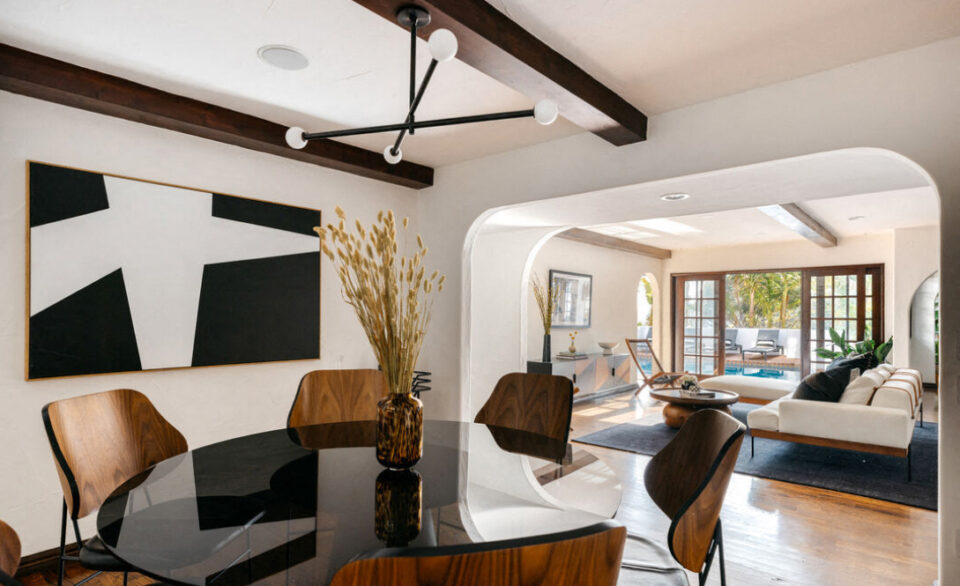 Într-unul din cele mai pitorești cartiere din Los Angeles, populat de numeroase celebrități de la Hollywood, o reședință construită în anii 60 îmbină arhitectura spaniolă cu o amenajare interioară cu influențe midcentury și cu accente moderne, într-un cadru minimalist. Ultima oară când a fost scoasă la vânzare, această vilă de lux s-a tranzacționat pentru aproape trei milioane de dolari.