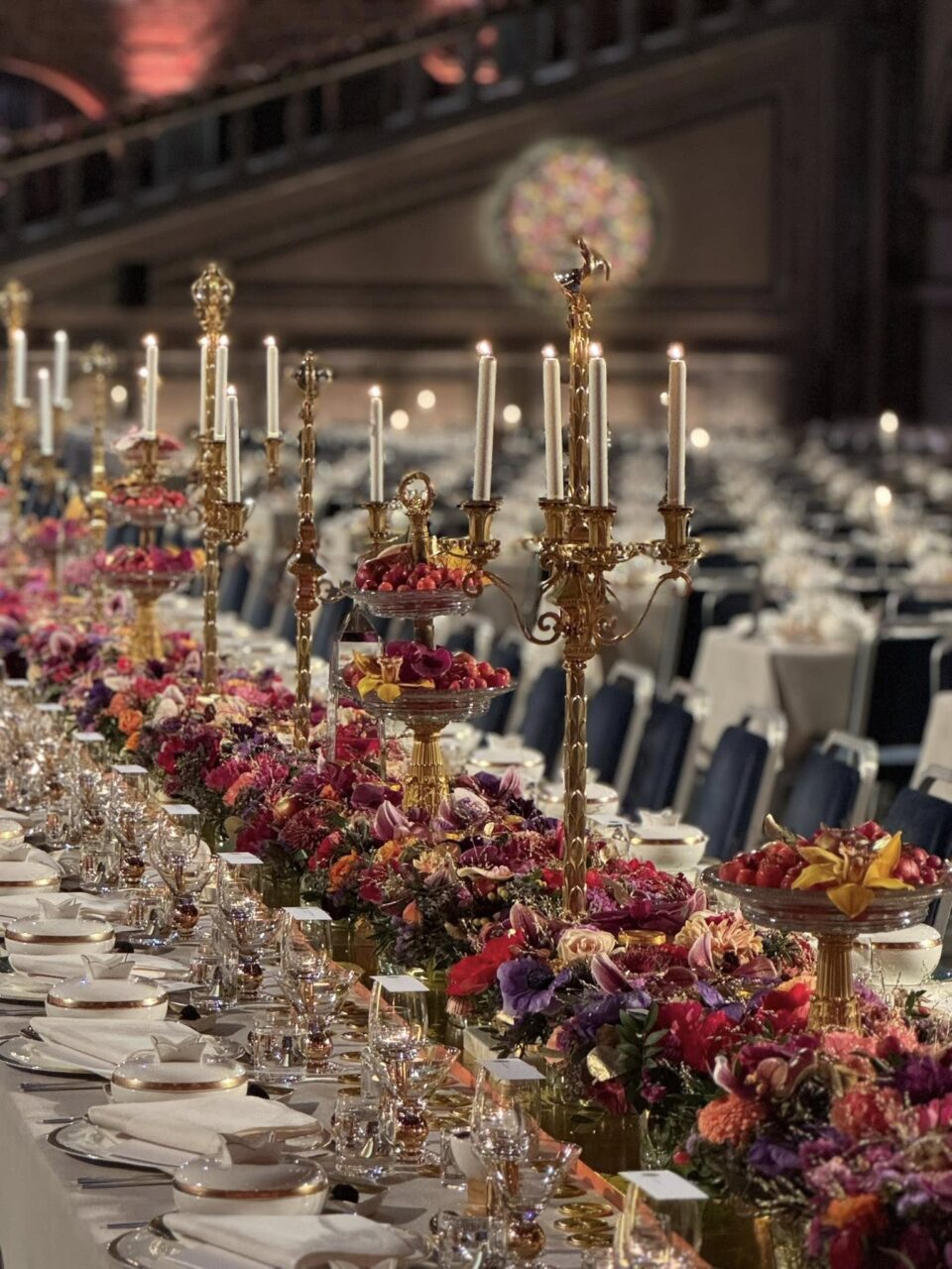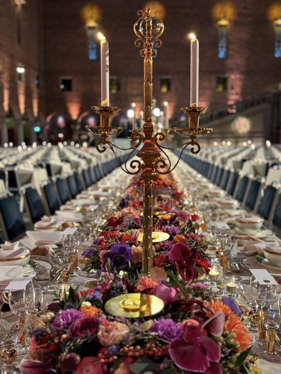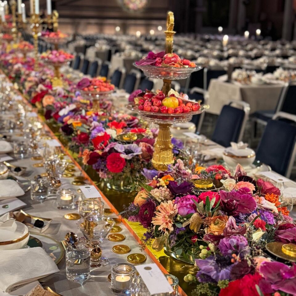 Aranjamentele florale pentru banchetul dedicat laureaților la ediția din 2025 a premiilor Nobel au fost o explozie florală cu vibe de final de vară în mijloc de decembrie, cu flori în tonuri profunde de purpuriu, portocaliu sau auriu miere. Autorul acestor aranjamente florale este un suedez – master florist renumit pentru designul lui floral colorat și pentru premiile obținute în domeniu. Ceremoniile de decernare a premiilor Nobel (acordate la Stockholm, cu excepția Nobelului pentru Pace, înmânat la Oslo) sunt urmate de un banchet la care particpă în jur de 1.300 de persoane. Cu câteva excepții, acest banchet se organizează încă din 1930 în sediul Primăriei din Stockholm, sub organizarea fundației Nobel, cu participarea laureaților și a familiilor lor, fiind o ceremonie centrată pe celebrarea academică a științelor și literaturii. Familia regală suedeză participă, membrii săi fiind invitați de onoare, dar participă și membri ai guvernului și parlamentului, precum și invitați străini din mediul cultural și științific. Foto: Pool for Yomiuri / AP / Profimedia Pentru fiecare astfel de banchet, sunt alese atent meniul și decorațiunile, adesea existând o simbolistică în spatele fiecărei alegeri. Foto: Pool for Yomiuri / AP / Profimedia De exemplu, la banchetul din decembrie 2025, desertul ales a fost un omagiu adus sălbăticiei din Suedia. Potrivit Fundației Nobel, în crearea desertului pentru ultimul banchet, pastry chef Frida Bäcke a fost inspirată de amintirile din propria copilărie, când mergea împreună cu bunicii la cules de zmeură în pădurile Suediei. Explozie de culori prin aranjamente florale, la banchet Aranjamentele florale de pe mese și din restul sălii au completat prin culoare mediul sobru și ținutele de o eleganță regală ale participanților. Foto: Per Benjamin Autor al acestei simfonii florale este renumitul maestru florar Per Benjamin din Stockholm, de unde își conduce compania Benjamins Botaniska. El este cunoscut pentru designurile sale colorate, victoriile la campionate mondiale de profil și pentru designul floral pentru banchetele care urmează decernării Premiilor Nobel, în Suedia. Foto: Per Benjamin Și în 2025, ca întotdeauna, flrile au fost aduse din San Remo, Italia, fiind apoi introduse în compozițiile florale din sediul Primăriei Stockholm. Paleta de culori a fost completǎ: tonuri de mov, roz, portocaliu, lila, maro roșcat, piersică sau vișiniu, aproape negru, cu accente de culoarea mierii și auriu, pe un fundal verde. Foto: Per Benjamin Florile sunt anemone minunate, ranunculus, trandafiri, garoafe, orhidee și meri de toamnă, ilex și malus cu o notă de auriu, expresie a excelenței asociate premiilor Nobel. Aproximativ 25.000 de tulpini de flori și frunze au folosite pentru a construi aceste aranjamente, care schimbă în mod clar ambientul destinat unei adunări sobre, de asemenea, nivel. „Lucrăm întotdeauna cu materiale și tehnici sustenabile, inovatoare și reutilizabile pentru a reduce impactul nostru asupra mediului”, spune artistul floral. CITEȘTE ȘI: Vilă în Mallorca – o locație poetică, renovată în scop turistic În casele celebrităților: bucătării exterioare somptuoase pentru zile călduroase David Beckham se apucă de grădinărit, proiectul va fi la cel mai mare show de grădini din Anglia Distribuie articolul pe: