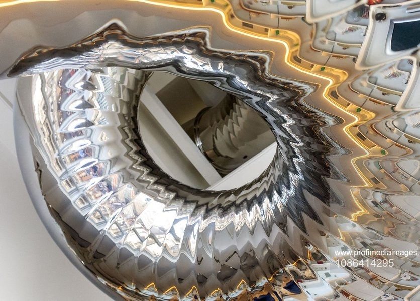 Zonele străbătute de tobogan integrează ciudata construcție: în dormitorul de oaspeți, singurul perete vertical din cameră este acoperit cu o pictură murală inspirată de Neverland – domeniul lui Michael Jackson – care împrăștie cioburi de culoare saturată de-a lungul suprafeței lustruite ca oglinda.
