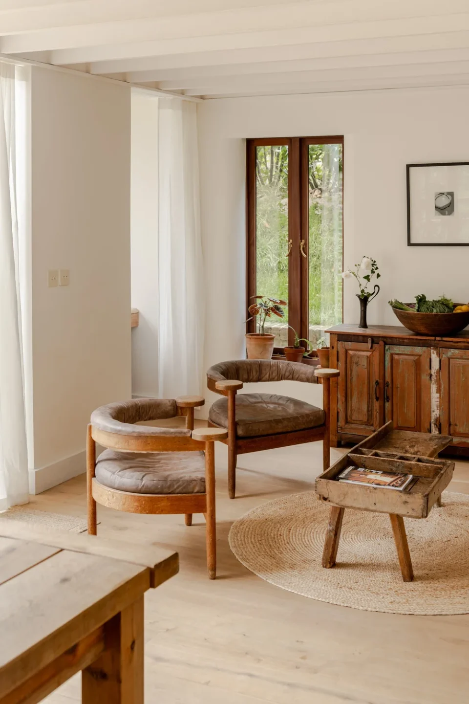 Lemnul și tencuiala albă reconstruiesc în stil contemporan un mediu marcat de amprenta locală și caracterizat prin confort și familiaritate.