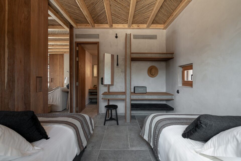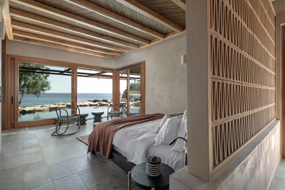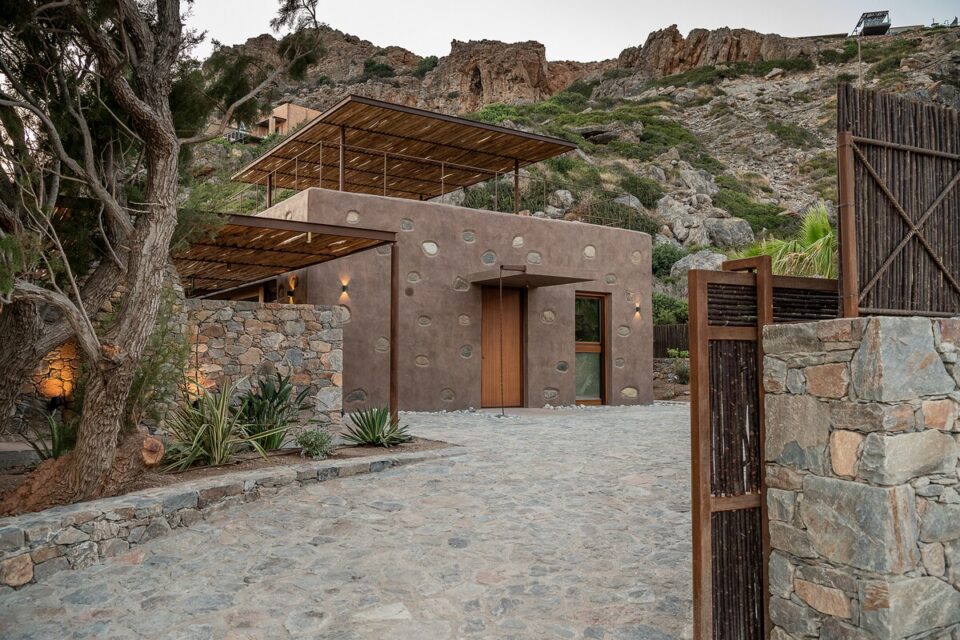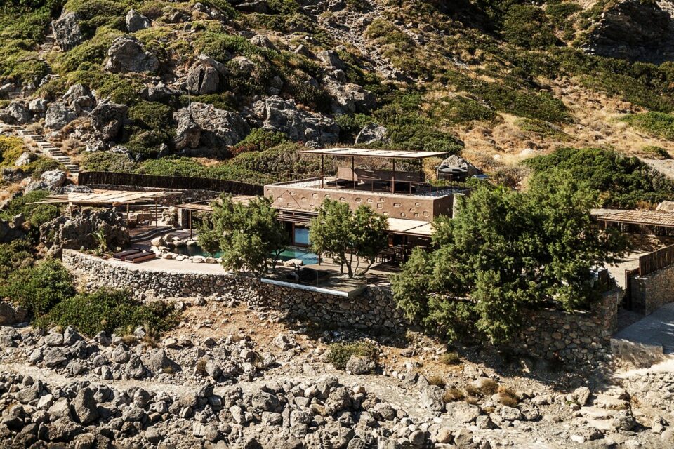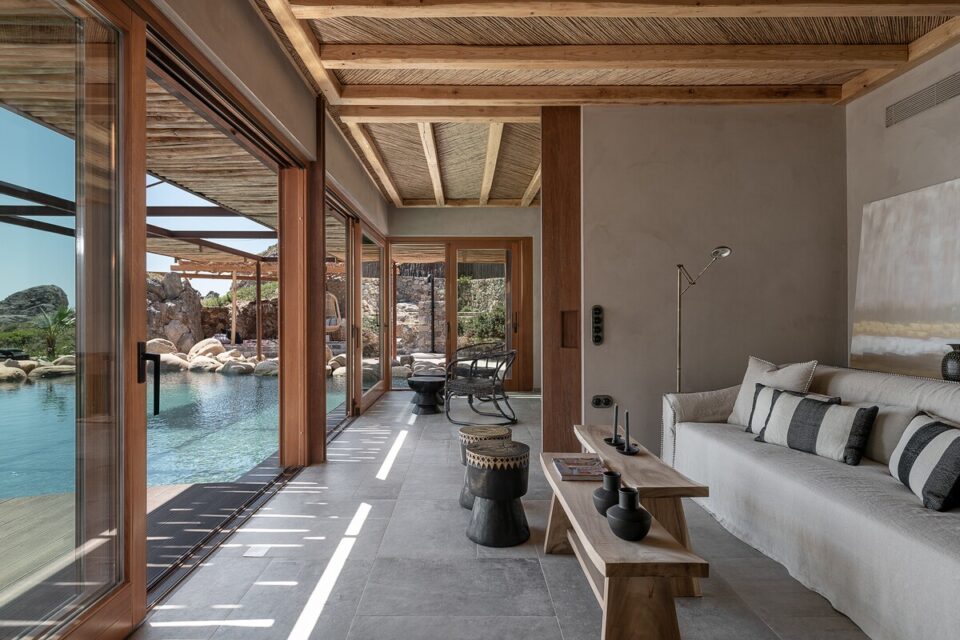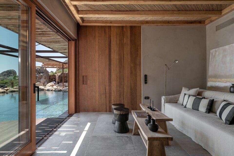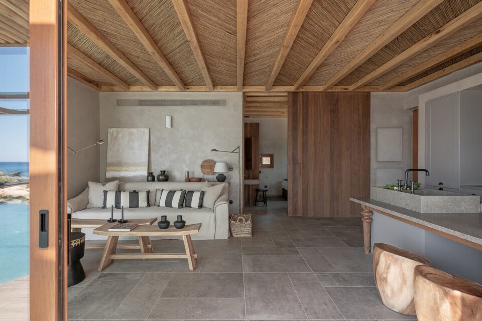 Pe coasta sălbatică din Chania, într-o zonă liniștită din Livadia (Grecia), se află o casă de vacanță integrată atât de bine în peisaj, încât piscina sa pare o extensie a mării – sau invers – și continuă peisajul natural mediteranean într-o zonă construită de mâna omului. Proiectul, cunoscut sub numele de „Native Beach Villa”, este realizat de biroul Paly Architects, sub coordonarea arhitecților Nikos Lykoudis și Ismini Papaspiliopoulou. O arhitectură simplă, inspirată de peisaj Casa este definită de o formă geometrică clară: un volum dreptunghiular, un „cub” în care jocul dintre plin și gol creează dinamism vizual. Această simplitate este specifică arhitecturii grecești contemporane, unde accentul cade pe proporții, lumină și relația cu mediul. Amplasarea este esențială pentru concept: terenul este delimitat natural de trei arbori de tamarisc, care oferă umbră și un sentiment de protecție. Spre sud se deschide priveliștea către mare, cu nuanțele intense de albastru, iar spre nord se ridică relieful stâncos al muntelui. Aceste contraste naturale definesc spațiul și dau identitate locuinței. Piscina care extinde marea Un element spectaculos este piscina cu formă liberă, modelată după rocile din zonă. Aceasta devine o extensie vizuală a mării, ca și cum valurile ar pătrunde într-un mic golf natural. Este un exemplu clar de design care nu impune, ci continuă peisajul. Terasa exterioară, organizată într-o formă dreptunghiulară simplă, funcționează ca un living în aer liber, preluând atât de populara tendință de a dizolva limitele între interior și exterior, încurajată și de clima perfectă a zonei. Terasa se prelungește până la o platformă suspendată deasupra mării, oferind o experiență directă și autentică a mediului natural. Bucătăria exterioară, construită din piatră și prevăzută cu un cuptor tradițional, închide și definește spațiul de zi din exterior. În același timp, ea adaugă un element autentic, inspirat din stilul de viață mediteranean, unde clima este blândă, iar viața din interior migrează ușor afară și invers. Influența locală în abordări, materiale și texturi naturale Un aspect esențial al proiectului este alegerea materialelor, toate provenind din zonă. Piatra, lemnul și metalul sunt folosite într-un mod echilibrat, păstrând o paletă cromatică naturală. Exteriorul este finisat în tonuri de pământ și ajută casa să se integreze discret în peisaj, care se infiltrează apoi nestingherit înăuntru. Ferestrele largi cu rame din lemn, culorile naturale, brute chiar generează căldură sub soarele mediteranean și prin asociere cu lemnul periat de iroko. Contrastul este subtil, între nuanțe cu aceeași proveniență, accentuate ușor prin metalul negru al accesoriilor de baie sau al coprurilor de iluminat. La exterior, terasa are pardoseală din mortar lustruit tradițional, combinat cu piatră locală cioplită, ceea ce întărește caracterul autentic al construcției. Pietrele într-o dezordine naturală, acoperișurile naturale și vegetația care se extinde de la sine în jur îmbracă locul în calm, exact ce trebuie pentru o vacanță liniștită în mijlocul sălbăticiei. Foto: George Anastasakis CITEȘTE ȘI: Casă de vacanță în țara lui Moș Crăciun: minimalism în stil scandinav Tradiționalul reinventat într-o casă veche, loc de vacanță perpetuă în Tinos Minimalism în negru și materiale naturale într-o casă de vacanță, în context rural Distribuie articolul pe:
