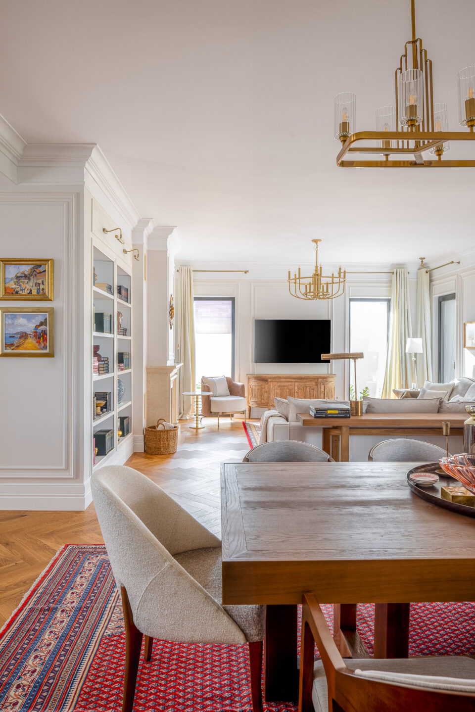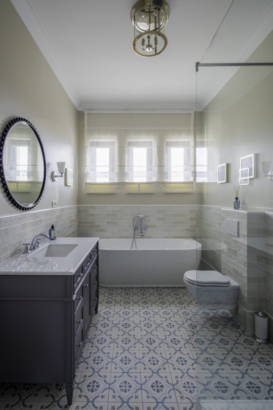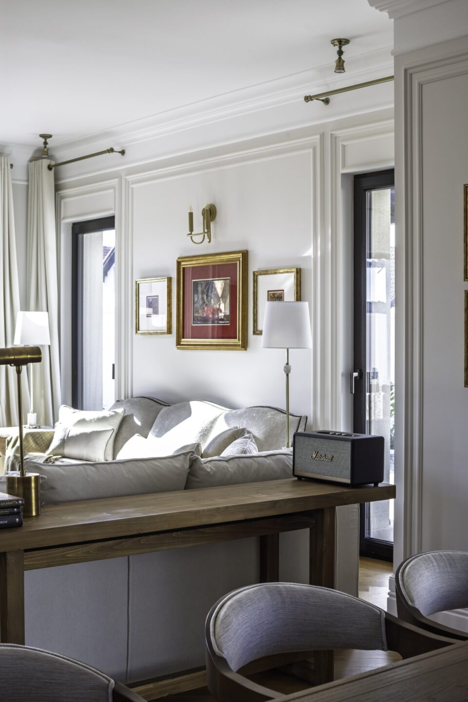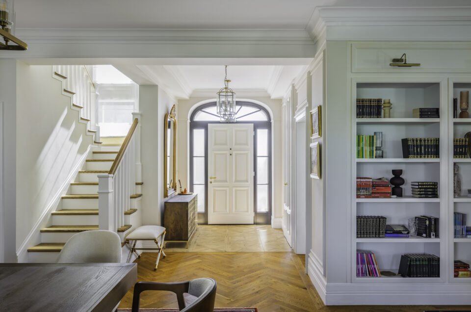 Într-o vilă de lux din Timișoara, stilul clasic capătă o interpretare modernă, materialele naturale și detaliile rafinate completându-se echilibrat cu asimetrii și forme contemporane. Spațiul luminos și larg devine cadrul unei desfășurări în care eleganța clasică întâlnește forma actuală, rezultatul fiind un ambient primitor, original și atemporal. Proiectul este semnat de CASS Design, iar viziunea designerului a urmărit să creeze, în vila de 350 mp, un mediu în care stilul și eleganța să fie evidente, punând fiecare element în valoare fără excese. Cărți, artă și accente de culoare De la intrare, parchetul tip Versailles atrage atenția și oferă casei un aer nobil și atemporal. De acolo, spațiul se deschide spre zona de zi, dominată de culori în mare parte neutre, pe al căror fundal se remarcă accentele în nuanțe de albastru profund și burgund. Tot de aici înccepe să se desfășoară scara – alt punct de atracție al casei, care contribuie la coerența designului și leagă armonios cele două niveluri ale casei. Aici, pereții sunt decorați cu profile care adaugă ritm vizual și structură arhitecturală spațiului, scăldat în lumină naturală. Arta și cărțile – aici într-o bibliotecă integrată în perete – sunt o prezență constantă în această vilă de lux, adăugând spațiului acea componentă personală de care orice casă confortabilă are nevoie. Ușoara influență Art Deco resimțită în forma ușii de intrare apare și la iluminatul din zona de zi, finisajul și formele rotunjite ale corpului de iluminat evocând ceva din strălucirea anilor 30. Canapele cu formă clasică se asociază cu măsuțe laterale contemporane, arătând că materialele prețioase texturate nu-și pierd eleganța lângă lemnul cu aspect natural și formă brutalistă. Livingul este unul dintre cele mai impunătoare spații din casă, elementul central fiind șemineul placat cu travertin. Acesta aduce textură, dar și eleganță discretă, continuată natural prin corpurile de iluminat cu finisaj auriu. Bucătăria cu mobilă albastră Bucătăria păstrează aceeași linie elegantă, dar este adaptată nevoilor actuale, designul combinând elemente clasice cu soluții moderne. Electrocasnicele în stil vintage aduc un aer tradițional și, alături de hota integrată într-o structură customizată și încadrată de mobilier într-o simetrie clasică, asigură condiții de gătit de ultimă generație. Insula centrală este spațioasă și poate fi folosită atât pentru pregătirea mesei, cât și pentru servirea rapidă a acesteia. Iluminatul o transformă într-o zonă de interes în bucătărie, cu accent pe rolul său practic, dar și de centru al socializării în încăpere. Finisajele sunt mate, fapt care permite o mai bună percepție asupra culorii: aici accentul albastru devine surprinzător, fiind o culoare mai rar întâlnită în bucătării. Placarea din zona plitei este nu doar practică, fiind mai ușor de întreținut decât o culoare solidă, ci devine un element de stil. Micile detalii metalice aurii – feroneria și iluminatul – completează imaginea unei bucătării unde stilul clasic îmbracă, de fapt, funcționalitatea contemporană. Relaxare, dar și joc de culoare în aria privată Dormitorul continuă stilul general al casei, clasicul fiind condimentat cu asimetrii și accente contemporane. Ordinea specifica stilului clasic sare puțin din tipar prin existența unui singur tablou poziționat spre dreapta patului și a unei singure ferestre. Echilibrate pe stânga de un pendul, acesta construiește, împreună cu lampa de pe noptieră, o schemă de lumină atipică stilului clasic, dominat de simetrii. Suprafața riflată a sertarelor și linia modernă a patului aduc și ele o componentă contemporană în acest mediu, fără să provoace însă dezechilibru vizual. Liniile sunt curate, iar materialele plăcute la atingere. Texturile moi și culorile deschise creează un spațiu liniștitor, potrivit pentru odihnă. Totul este simplu și intenționat, astfel încât atmosfera să fie relaxantă. Băile urmează aceeași direcție, preluând din accentele de culoare prezente în zona de zi, dar și din cromatica neutră a dormitorului. Într-o asociere curajoasă și perfect logică, albastru domină parte din pereți, completați de placările al căror alb subliniază pardoseala și, implicit, spațiul. În altă baie, neutrul pereților lasă loc de afirmare pardoselii cu model vintage, accentele fiind de data asta închise, sobre. Finisajele luminoase și detaliile bine integrate – precum corpurile de iluminat sau arta expusă și aici – creează senzația de spațiu stilat și aerisit. Nu există elemente inutile, ci doar soluții practice care limitează eleganța. În ansamblu, această vilă de lux din Timișoara este o locuință unde rafinamentul provine din asocierea inteligentă a stilului clasic cu elemente contemporane. Mobilierul în care se regăsește mixul de materiale naturale, iluminatul din surse bine plasate, coerența culorilor și echilibrul accentelor fac ca fiecare încăpere să contribuie la o imagine unitară. Rezultatul este o casă caldă, armonioasă și cu un stil ușor de păstrat în timp. Foto: Sorin Săftescu CITEȘTE ȘI: Un apartament de lux unde marmura schimbă perspectiva asupra spațiului Design cu identitate: o locuință de lux unde inima casei bate în bucătărie Loft în New York: emblematică asociere între contemporan și spațiu industrial Distribuie articolul pe: