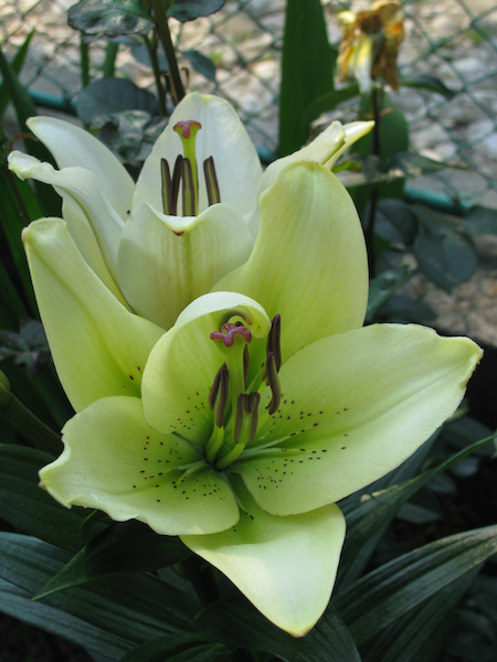 Umbrele verzui ale acestui crin asiatic alb îl recomandă pentru aranjamente deosebite.