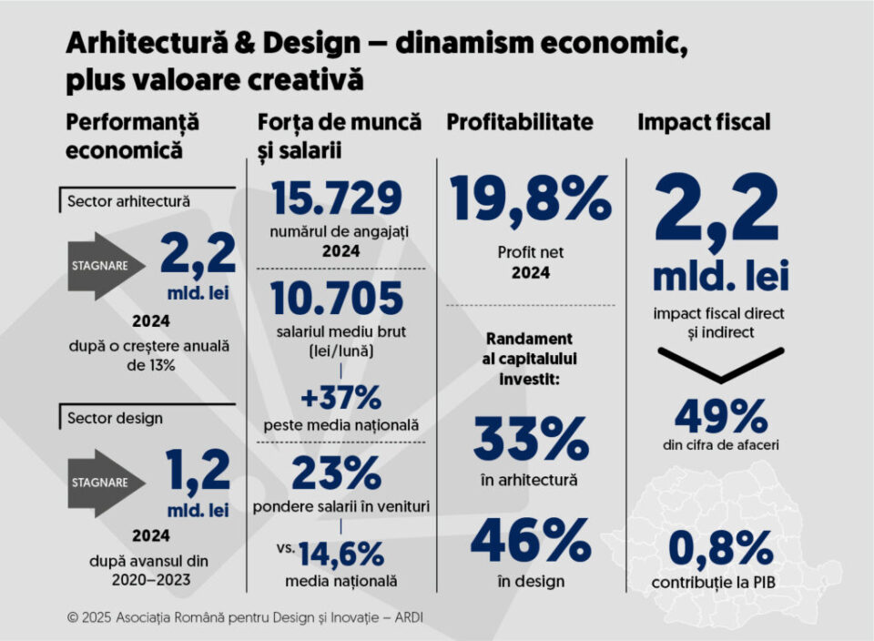 O nouă destinație culturală în București: Galeria Modernă de Arhitectură și Design O nouă locație culturală și-a deschis porțile în București, pe strada George Calinescu 53A, cu o suită de expoziții desfășurate pe cinci nivele și care pot fi vizitate de miercuri și până duminică. Galeria Modernă de Arhitectură și Design (GMAD) se află într-o clădire modernă, transformată prin eforturile Fundației Reinstaurăm Gloria Istorică într-un spațiu dedicat arhitecturii, artelor vizuale și decorative, muzicii live și experiențelor multisenzoriale. În spațiul de peste o mie de metri pătrați sunt deja deschise publicului expoziții cu teme precum arhitectură, design interior, pictură contemporană și design vestimentar, care vor rămâne disponibile până la finalul lunii martie 2026. Art Safari se mută din Palatul Dacia în Amzei, din 2026 Din 26 martie 2026, Art Safari se mută din Palatul Dacia în Amzei și devine Art Safari New Museum. Noua locație se va deschide cu expoziții de excepție: Brâncuși, Eminescu, Vermont, Băncilă, Celibidache, într-un spațiu nou și care va oferi vizitatorilor nu doar artă, ci și acces la alte facilități. Art Safari se derulează anual, din 2014, după un program expozițional variat, inclusiv artă românească de patrimoniu, artă contemporană și Supercontemporană, precum și expoziții realizate în colaborare cu muzee internaționale de renume, precum National Portrait Gallery și Victoria and Albert Museum din Londra. De-a lungul timpului, Art Safari a fost organizat în diferite locații, printre care Garajul Ciclop, Galeriile Kretzulescu sau Palatul Dacia de pe str. Lipscani 18 – 20, clădire monument istoric construită la finalul secolului al XIX-lea. Industria mobilei, arhitectura și designul au adus statului venituri de 10 miliarde de lei, în 2024 Industriile românești de mobilă, arhitectură și design au adus împreună, în 2024, peste 9,9 miliarde lei în taxe și impozite la bugetul de stat (1,9% din veniturile bugetare ale statului), contribuția totală la formarea PIB fiind de 2,74%, potrivit unui studiu de impact realizat la comanda Asociației Producătorilor de Mobilă din România – APMR și a Asociației Române pentru Design și Inovație – ARDI. Potrivit studiului, industria mobilei rămâne unul dintre cei mai mari contributori din industria prelucrătoare, generând 7,7 miliarde lei impact fiscal total în 2024. Pe de altă parte, industria se confruntă cu provocări majore: scăderea volumelor vândute cu 16%, reducerea numărului de angajați cu 15% și o diminuare a profitabilității la 3,6%. În paralel, are profitabilitate de 19,8% și salarii medii cu 37% peste media națională, impactul fiscal total fiind de 2,2 miliarde lei. Studiul arată că cifra de afaceri cumulată a producției și comerțului de mobilier, împreună cu sectorul arhitecturii și designului, ajunge la 27 de miliarde de lei. La aceasta se adaugă cifra de afaceri a industriei de prelucrare a lemnului – de la tăiere și rindeluire, până la fabricarea de furnire și panouri – care depășește 15,5 miliarde de lei, indicând faptul că aceste domenii au un impact important în economia românească și nu numai, mai spun autorii studiului. Notice Title Un ou Faberge se vinde pentru a treia oară la preț record: peste 30 de milioane de dolari Cel mai mare muzeu arheologic din lume a fost inaugurat în Egipt, cu șapte ani întârziere Un artist american care țese cu fâșii de sticlă ia marele premiu ArtPrize 2025 Distribuie articolul pe: