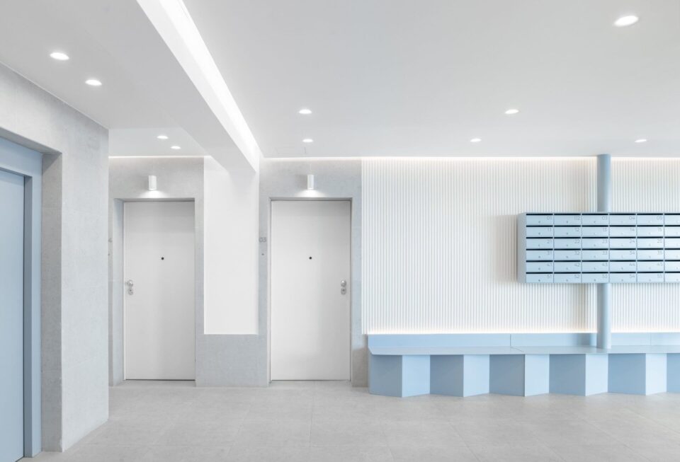 Renunțarea la plicticoasele tonuri de gri metalizat și înlocuirea lor cu o singură culoare, contemporană, pentru cutii poștale și pentru alte accesorii interioare au schimbat total spațiile comune ale unui bloc din București, într-un proiect numit Aparatus și nominalizat la Secțiunea de design de obiect a Bienalei Naționale de Arhitectură 2025. Miza proiectului a fost completarea unui spațiu de trecere cu elementele necesare locuirii în comunitatea blocului și, în același timp, designul unui “obiect” care conține mai multe utilizări, spune arhitectul Codrin Mazilu, fondator Fulcrum Atelier și unul dintre autorii proiectului. Cutiile poștale, ușile liftului, balustradele și bancheta de la intrare sunt toate în aceeași poveste cromatică, formând un singur aparat – de unde și numele proiectului, Aparatus -, într-o singură nuanță de albastru, întâlnită tot mai des în amenajările contemporane. Potrivit arhitecților, bancheta este pretextul unei pauze în tranzitul constant al holului și încearcă să îi ofere calități în plus. Ediția din 2025 a Bienalei Naționale de Arhitectură – expoziție concurs organizată de Uniunea Arhitecților din România – include acordarea unor premii la 19 secțiuni, printre altele pentru proiecte de arhitectură interioară și exterioară, design interior și design de obiect, restaurare a unor clădiri, revitalizare rurală, dar și pentru fotografie ori film de arhitectură. Foto: arh. Vlad Pătru Distribuie articolul pe: