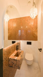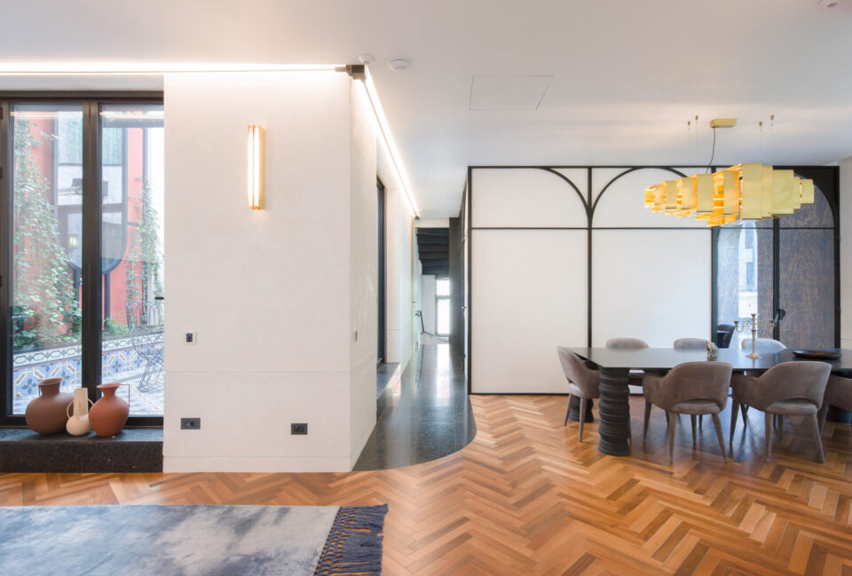 În cartierul bucureștan Floreasca, o vilă de lux reinterpreteazǎ, stilizeazǎ şi integreazǎ cultura marocanǎ în peisajul urban al Capitalei. Culorile vibrante, formele curbe, lumina filtrată subtil și elementele traforate trasează în interiorul atipic, o poveste arhitecturală resimțită de la intrare și până în ultimul colț al casei. Vila face parte dintr-un țesut urban mixt, în care locuințele colective de înălțime medie și mare coexistă cu vile unifamiliale cu regim redus de înălțime. Proiectul – gândit de Cumulus Architecture și înscris la Anuala de Arhitectură 2025 – transpune în spațiul locuit pasiunea proprietarului pentru cultura marocană. Arhitecții au plecat de la aceste premise pentru a construi un mediu în care funcționalitatea și esteticul să coabiteze, în exterior și în interior, într-un mod adecvat peisajului urban în care se încadrează locuința. Tranziția de la fațadele discrete și aproape sobre la mozaicul colorat și mobilierul aproape filigramat din inima casei se face lin, prin introducerea treptată și atentă a detaliilor de arhitectură și a culorilor. Două elemente esențiale coagulează întregul demers, regăsindu-se coerent în proiect: arcul de cerc și traforul. Arcul de cerc se regăsește atât în detaliile arhitecturale ale fațadei, cât și în elementele de design interior: arcade, scafe, desene în pardoseală, subtile decupaje în mobilă. Traforul este folosit că un instrument de „modelare” a luminii: la ferestre, detalii de mobilier și corpuri de iluminat, lumina este filtrată și transformată în jocuri de umbre subtile, care animă suprafețele și amplifică decorul. Interior care amintește de modelul riadurilor marocane Centrul casei îl reprezintă curtea interioară – o „cameră” sub cerul liber, bogat ornamentată cu pardoseală de mozaic, oglinzi și vegetație. Întâmplător sau nu, este în tradiția marocană ca locuințele să includă astfel de curți interioare, adesea îmbrăcate în mozaic și folosite ca loc de masă, socializare ori odihnă. aici bate, de fapt, inima riadurilor marocane. Ferestrele ample deschid interioarele către această curte, dizolvând limitele fizice și creând iluzia unui spațiu amplu și continuu. Paleta cromatică pornește de la tonuri neutre – alb și griuri calde – și este punctată de accente de albastru și roșu, în nuanțe vibrante, adecvate fiecărui spațiu. Detaliile din alamă adaugă profunzime și eleganță, asociate local cu metalul negru filigranat. Materialele și detaliile moderne de plinte îngropate, nuturi, inserții de baghete sunt armonizate cu tehnici tradiționale marocane, precum tadelaktul, oferind casei o identitate unică, aflată la granița dintre modernitate și reverie orientală. În băi, spre exemplu, această veche tehnică se asociază pieselor actuale din metal negru, aduse în aceeași logică de inspirație marocană prin introducerea arcelor, unul din cele două leit-motivuri ale casei. Finisajul cu aspect de piatră naturală se integrează natural aici, răspunzând astfel și cerințelor funcționale prin aspectul curat obținut. Proiectul a fost înscris la Anuala de Arhitecturǎ, ediția 2025, iar autorii lui sunt arhitecții Elena Dragu, Andra Jugănaru, Mihaela Ciolache, Radu Matei, Mara Tomulescu, Răzvan Mălăncioiu (vizualizare) şi Andrei Cumpănășoiu (vizualizare). Foto: Andrei Mărgulescu si Lucian Călugărescu CITEȘTE ȘI: Riadurile marocane: luxul tradiției și farmecul oriental Culoarea și texturile se îmbrățișează eclectic în această reședință din Houston Plăci ceramice cu stil încorporat: 7 locuri în care să le folosim creativ Distribuie articolul pe: