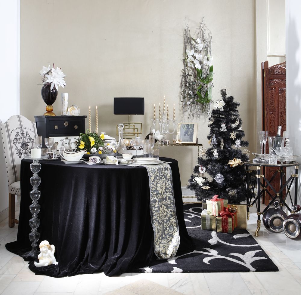 Impresioneaza-ți familia și musafirii cu o masă de Crăciun de o eleganță rafinată! Iată un posibil scenariu pentru o masă festivă cu aer nobil. Foto: Sorin Iacob Alege porțelanuri și cristale fine, pe care să le etalezi pe o față de masă din catifea neagră. Pentru mai multă strălucire, optează pentru accesorii aurii și completează cadrul cu alb. Odată ce te-ai hotărât asupra unui stil, ai grijă ca toate detaliile să se armonizeze. O alegere îndrăzneață o reprezintă un brad negru, împodobit cu decorațiuni prețioase. Aranjamentele din flori și plante naturale subliniază atmosfera de sărbătoare. O masă de o eleganță rafinată Foto: Sorin Iacob Pahar pentru vin Bourgogne Gold, din cristal, suflat și șlefuit manual, brand Mario Cioni.Diametru 8 x h 16 cm • 351 lei • Azay Decorațiune Fulg de Nea, din cristal, brand Waterford.Diametru 10 cm • 300 lei • Azay Sfeșnice Love Knots Gold, brand Vera Wang.h 25,5 cm • 430 lei/set • Azay Brad artificial.Diametru 90 x h 150 cm • 225 lei • www.brad-artificial.ro Veioză cu abajur din mătase. L 40 x l 20 x h 61 cm 1.879 lei • Exotique Ceașcă și farfurie pentru cafea Cornucopia, brand Wedgwood. Ceașcă: diametru 6,5 x h 6 cm • 250 lei; farfurie: diametru 14 cm • 180 lei • Azay Ceașcă și farfurii pentru ceai Cornucopia Leigh, brand Wedgwood. Ceașcă: diametru 8,5 x h 6 cm • 235 lei; farfurie mică: diametru 14 cm • 90 lei Azay Set patru pahare cu frapieră, brand Royal Doulton. Pahar: diametru 6,5 x h 27 cm; frapieră: diametru 18 x h 32 cm • 925 lei • Azay Sfeșnic Carmen, cu cinci brațe, din sticlă borosilicată, design Gabriela Seres. Diametru 39 x h 32 cm • 1.783 lei • Azay Vază Mirus Blue & Ambra, brand Mario Cioni. Diametru 17 x h 43 cm • 7.750 lei • Azay Aranjament floral de perete, cu structură din materiale naturale, crengi de Corylus și mesteacăn, două orhidee Phalaenopsis albe. 650 lei • Olla Floral Art Brandurile Azay, Exotique și Olla sunt Furnizori ai Casei Regale a României Distribuie articolul pe: