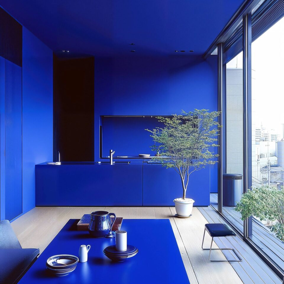 Imersiune totală în albastru Klein, într-o reședință modernă din Tokyo