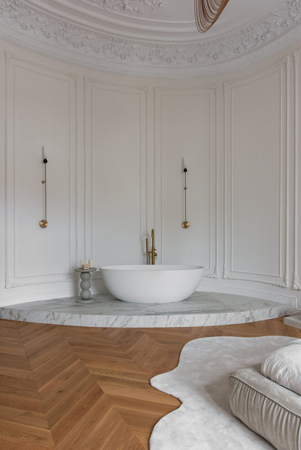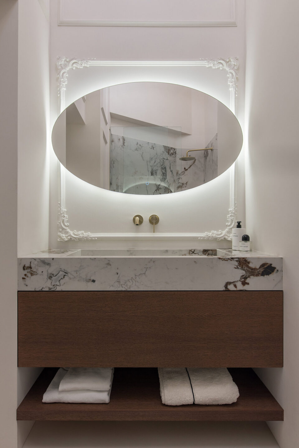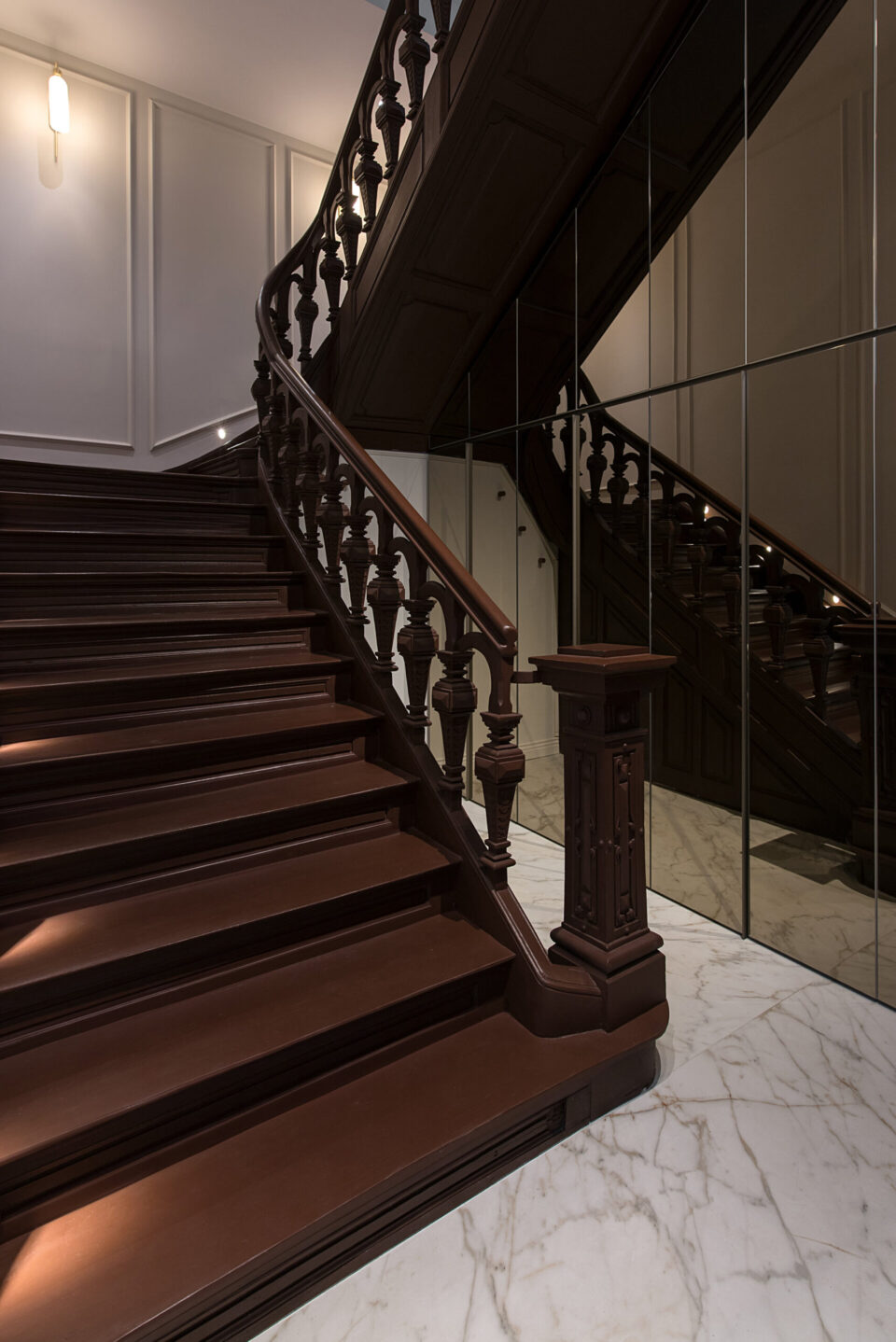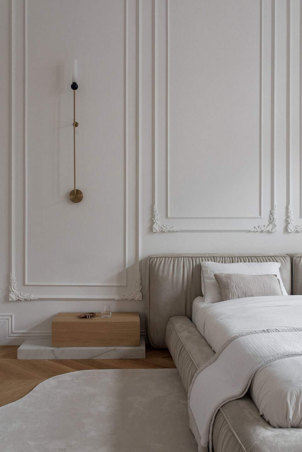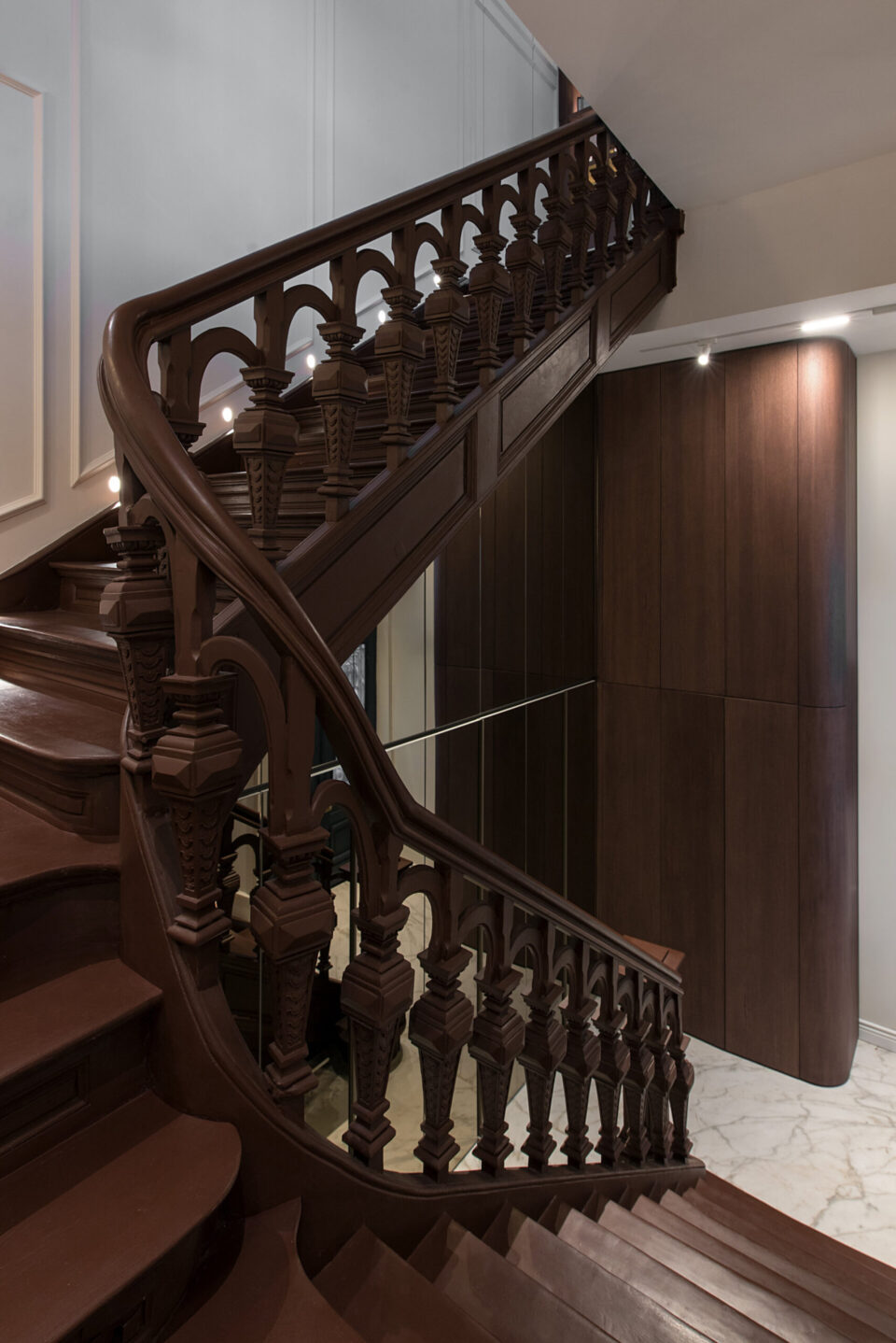Un apartament dintr-o casǎ neoclasicǎ din 1927, din centrul Bucureștiului, cu plafoane înalte, tâmplărie din lemn originală și o scară monumentală este azi locuința modernǎ şi funcționalǎ a unei familii contemporane. Casa păstreazǎ eleganța vremurilor de demult, după ce a traversat un proces de restaurare și amenajare de lux interioară. Proiectul a plecat de la ideea de coexistență între arhitectura istorică și limbajul contemporan, dar într-o formă care să le pună pe ambele în valoare, nu în contrast. Proiectul își propune să ofere un răspuns la tema „Bucureștiul estetic” nu prin gesturi formale spectaculoase, ci prin reactivarea subtilă a valorii arhitecturale existente. În acest apartament locuiesc doi tineri recent cǎsǎtoriți, cu un stil de viață activ și sociabil. Dialogul strâns între echipa de arhitectură și beneficiari a permis formularea clară a priorităților: funcționalitate, păstrarea caracterului istoric, dar și definirea unei estetici coerente, adaptate sensibilității contemporane. Forma și finisajul se potențează reciproc Pe acest fond, plafoanele decorative, proporțiile ample ale camerelor și scara interioară au fost păstrate ca repere centrale. Volumele mobilierului, cromatica și texturile propuse definesc o estetică coerentă, articulată în jurul elementelor istorice existente. Finisajele urmează coerența și logica materială a locuinței originale. Pardoselile sunt preponderent din parchet triplu stratificat în zonele de dormit și de zi, păstrând tipologia specifică amenajărilor interbelice. În zona de acces, la bucătărie și la baie designerii au folosit placări ceramice cu motive decorative, ca referință directă la limbajul ornamental al începutului de secol XX. Tâmplăria din lemn a fost conservată, restaurată și consolidată, la fel ca profilele și stucaturile existente. Paleta cromatică este compusă din tonuri calde și saturate – portocaliu, teracotă, verde salvie – reminiscențe reinterpretate ale interioarelor de sfârșit de secol XIX, în contrast cu pereții neutri și suprafețele mate. Mobilierul lasă structurii loc central Mobilierul fix este realizat din MDF vopsit și furniruit, executat local, cu rol dublu – funcțional și volumetric. Piesele sunt desenate pentru a optimiza spațiul și a lăsa frumusețea structurală a încăperilor să iasă în evidență. Zona de zi este centrată pe o canapea generoasă, completată de fotolii cu structură metalică și o masă din lemn masiv, produsă local. Marmura, imprimeul alb-negru al fotoliilor și catifeaua completează aerul pretențios al ambientului, completând eleganța interbelică a clădirii. În asemenea logică, intervențiile actuale – precum iluminatul cu leduri ori separatoarele din sticlă – trec neobservate. Mobilierul din bucătărie păstrează o linie formală unitară, cu fronturi netede, detalii discrete din metal și finisaje mate. Lemnul cu fibră închisă completează eleganța, nu o abrutizează. Schema cromatică și finisajele continuă în baie, cu alăturarea lemnului nobil și a suprafețelor satinate ale bateriilor aurii, cu marmura cu inserții roșcate colorând natural pereții dușului. O compoziție aparte este rezervată zonei matrimoniale, unde, pe fundalul peretelui curbat, designul devine sculptural, prin plasarea căzii de baie freestanding pe un postament din marmură. Iluminatul și accesorizarea subliniază eleganța naturală a spațiului, înălțimea conferind locului prestanța unei opere artistice. Limbajul eleganței scrie povești și în exterior Într-o notă poetică, terasa leagă interiorul casei de zona urbană, arhitectura jucând în folosul designului. Amenajarea terasei a urmărit restabilirea relației inițiale cu arhitectura clădirii, fiind păstrate frontonul tencuit și decorat în stil neoclasic, precum și parapeții originali. Pardoseala este acoperită cu plăci ceramice cu model caroiaj alb-negru, tipic perioadei interbelice. Mobilierul este minim și discret, completat de vegetație integrată punctual. Un măslin amplasat într-un colț al terasei întărește atmosfera domestică, fără să perturbe caracterul arhitectural al fațadei. Terasa rămâne un spațiu versatil, folosit constant, atât pentru repaus, cât și pentru viața socialǎ. Valoarea acestui proiect derivă din calibrarea atentă a locuirii – prin conservarea, restaurarea și reinterpretarea elementelor existente ale casei: scara monumentală din lemn masiv, tâmplăria originală, obiectele decorative, stucatura, dar și anumite piese de mobilier. Proiectul devine astfel un exercițiu de estetică aplicată și o propunere de bună practică pentru regenerarea locuirii urbane în Bucureștiul contemporan. Acest proiect, realizat de Laboratorul de Arhitectură – arh. Cristina Stroe, arh. Alina Dumitrescu, arh. Ioana Ciobanu – a fost înscris la Anuala de arhitecturǎ Bucureşti, ediția 2025, fiind nominalizat la secțiunea Amenajǎri interioare/ Amenajǎri rezidențiale. Foto: Kateryna Zolotukhina Distribuie articolul pe: