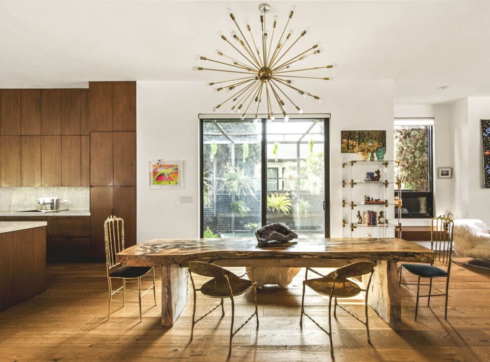 Într-o formulă care combină brutalismul cu elemente artizanale, o vilă de lux din Los Angeles arată cum personalizarea designului – prin instrumente muzicale, piese vintage ori obiecte artizanale – construiește identitatea unică a unei case. Desfășurată pe mai multe niveluri, această vilă de lux din vestul orașului Los Angeles are un spațiu util de peste 550 mp, în care se regăsesc cinci dormitoare și șase băi. A fost construită în 2018, cu implicarea unei firme locale de arhitectură și îmbină într-un mod reușit volumele brutaliste și betonul cu elemente calde și personalizate precum lemnul, piesele artizanale și instrumente muzicale ca decor. La fiecare nivel, reședința are terase amenajate, către are accesul se face prin uși mari de sticlă culisante. Lumina naturală este unul dintre atuurile casei, formula arhitecturală permițând valorificarea din plin a acesteia. În interior, spațiul se desfășoară fluid din zona de zi spre bucătăria deschisă, îmbrăcată în mobilier din lemn, cu blaturi din quartz și electrocasnice high-end, unde tronează o insulă de peste patru metri lungime. Într-un context construit contemporan din materiale premium, scaunele de bar lucrate artizanal imprimă o notă personală, subliniată prin covorul tradițional, cu aspect vintage. În întreaga locuință, luxul înseamnă pardoseli din lemn masiv, canapele confortabile, îmbrăcate în piele naturală, piese vintage de mobiler, instrumente muzicale ca piese de decor. Confortul vizual vine din echilibrul dintre fundalul deschis al pereților și nuanțele neutre ale lemnului și marmurei, completate de accente metalice calde și finisaje vintage, specifice stilului boho. Este imposibil să nu remarci caracterul de colecționar al celui care compus acest decor, în care piese diferite și disparate construiesc o identitate atipică, liberă, neconformistă. În tot acest amalgam, covoarele – țesute manual, cu motive tradiționale – de desprind ca element de design, aducând în ambient influențe din culturi diferite. Confortul exterior – la fel de important ca interiorul Dincolo de spațiul amplu de locuit, facilitățile de lux înseamnă dressing spațios, sală de sport și amenajări exterioare care asigură confort oriunde te-ai afla. În exterior, se află o mică bucătărie de vară cu loc de luat masa, lângă o piscină de 12 metri lungime, care are prorpia casă de oaspeti cu două dormitoare si baie. Locuința a aparținut starului pop Kesha și a fost vândută cu șase milioane de dolari, în urmă cu aproape doi ani. CITEȘTE ȘI: Acasă la Bella Thorne: Țara Minunilor reimaginată în California, cu flori, nori și roz În casa unei legende Queen: vila spaniolă din anii ’30 a lui Roger Taylor Vilă de lux în Napa Valley: arta creează legătura între mediteranean și contemporan Distribuie articolul pe: