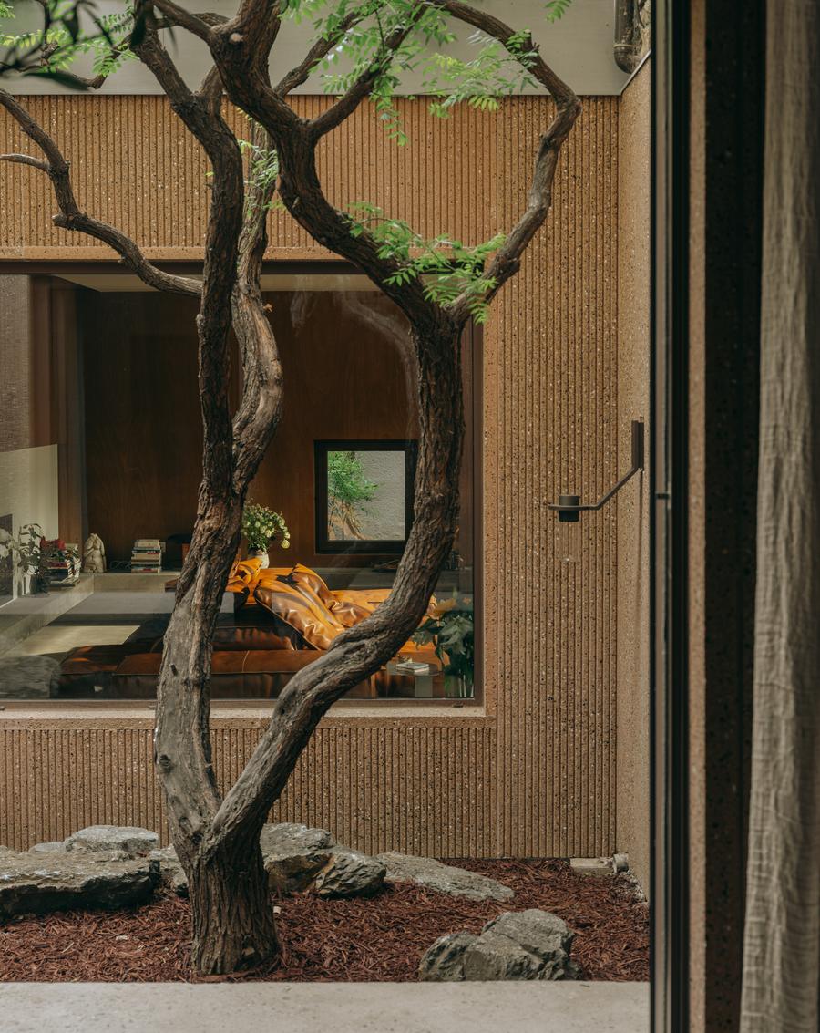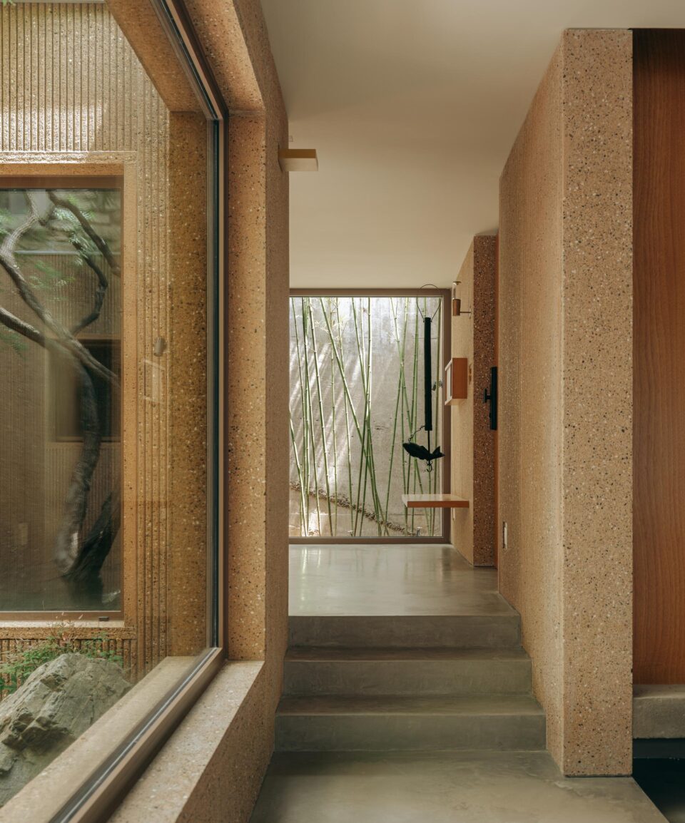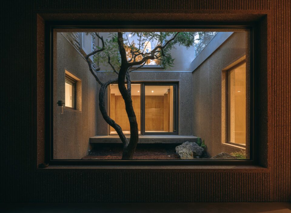 Ideea salvatoare a fost de a introduce mai multe curți interioare. În loc să construiască pe verticală, proiectul a fost gândit pe orizontală, prin crearea a cinci curți de dimensiuni diferite, care nu sunt doar elemente decorative, ci fac parte din viața de zi cu zi a casei.
