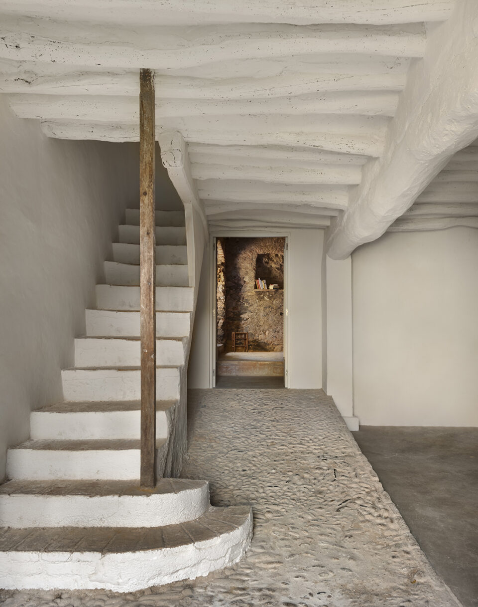 După un proiect de patru ani, o moară din secolul al XVI-lea din regiunea spaniolă Catalonia s-a transformat într-o locuință contemporană atipică, în care vechiul și noul coexistă fericit. Procesul a fost unul dificil, prin care designerii au restaurat elemente de bază ale construcției monument istoric, iar pe altele le-au adaptat pentru ca spațiul să devină o locuință primitoare. Munca le-a fost apreciată, proiectul fiind premiat internațional, în anul 2025. Arhitecții spanioli de la Estudio Vilablanch – specializați în restaurarea spațiilor cu mare valoare istorică – au transformat această veche moară de hârtie într-o locuință de 200 mp, situată pe o proprietate de 3.000 mp și înconjurată de vii și livezi de măslini. Moli de la Vilella Baixa a fost construită în secolul al XVI-lea, fiindu-i adăugat ulterior un turn, trei secole mai târziu. Potrivit arhitecților, clădirea principală – o construcție cu trei niveluri – adăpostea o moară hidraulică pentru prelucrarea hârtiei, dar și o casă pentru familia morarului și multe spații de depozitare. Turnul octogonal, în stil maur, a fost construit în secolul al XIX-lea, iar înuntru se găsea canalul prin care era adusă apa din zona superioară a dealului și până jos, unde necesară pentru prelucrarea hârtiei. Două terase completau ansamblul, constituind o structură din piatră care lega construcția și ușura accesul la terenul din jur. Un proces dificil de transformare, cu mai multe faze și care nu s-a încheiat Transformarea a însemnat un proces lung și cu multe faze, care au urmărit să asigure atât partea funcțională a viitoarei locuințe, cât mai ales păstrarea moșteniri arhitectonice a ansamblului, cu statut de monument istoric. Dincolo de limitările legale impuse de acest statut, arhitecții și-au dorit să pună în valoare frumusețea originală a construcției, făcând tradiția și contemporaneitatea să se întâlnească în același loc. Ultima fază urmează a fi parcursă și vizează amenajarea peisagistică a terenului. Una din provocările proiectului a fost conectarea clădirilor – între care există o diferență considerabilă de nivel – într-un mod care să respecte cerințele stricte de conservare a patrimoniului și care limitau orice creștere în volum. Inițial, moara și casa erau conectate, dar fără să asigure și acces în turn. Soluția găsită de arhitecți a fost construirea unui tunel vertical, excavat de-a lungul conductei de apă și instalarea unei scări astfel încât modificările să nu altereze vizibil vechea construcție. Scara instalată, invizibilă din afară, se susține prin propriul ax, într-un mod care a limitat intervenția asupra structurii originale. Această conexiune se completează cu un pasaj săpat orizontal, care vine în prelungirea tunelului și asigură astfel acces la nivelul superior al noii locuințe. Locuința rezultată are un dormitor cu baie, cameră de zi și o mică bucătărie la parter, nivelul fiind adaptat pentru accesul persoanelor cu mobilitate redusă. Primul etaj este folosit ca zonă de noapte, cu un dormitor matrimonial, o altă cameră și o baie. Sus, în turn, o bucătărie spațioasă face legătura cu zona de zi, asigurând o vedere panoramică, în timp ce pivnița a fost transfromată într-o cramă. Tot procesul de transfromare s-a făcut pe cât posibil cu tehnici și materiale locale, punând astfel bazele unei noi locuințe, dar care celebrează valoarea istorică a clădirii și capacitatea vechilor gospodării de a-și asigura local toate cele necesare, inclusiv materialele de construcție. Proiectul arhitecților de la Estudio Vilablanch a fost atât de reușit încât a primit unul din premiile Big See 2025, competiție de arhitectură și design lansată în 2018 ca una regională, dar care a atras în timp participare internațională extinsă. Foto: Eugeni Pons Distribuie articolul pe: