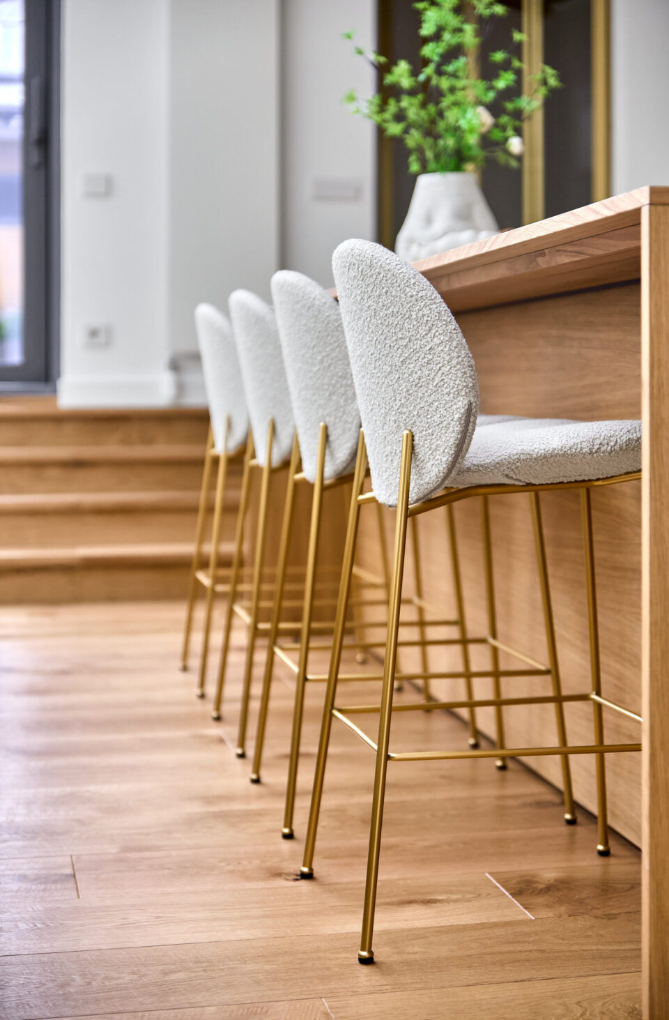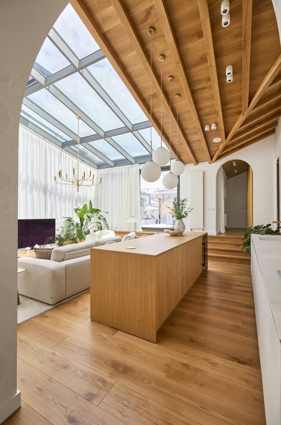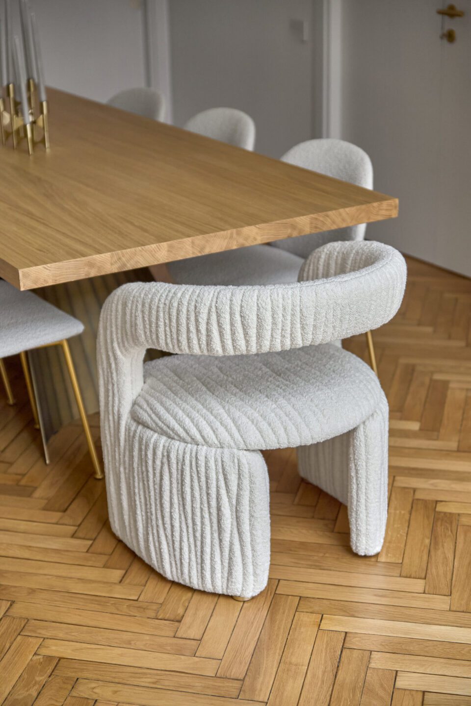 Un apartament întins pe un întreg etaj, dintr-o vilǎ de lux interbelicǎ din Bucureşti, scrie o poveste de dragoste între soare și natură prin limbajul designului. Este învǎluit în luminǎ naturalǎ, are plafonul livingului din sticlǎ, iar lemnul din mobilier, pardosealǎ şi tavan este pus în valoare de toatǎ puterea soarelui. Ideea amenajării acestui apartament de către arhitecții de la Dofinteriors a fost de a crea o oază de liniște, seninătate și echilibru, într-o reședință plasată în agitația cotidiană a orașului. Locuința se întinde spectaculos pe întreg etajul într-o vilă de lux interbelică, unde contemporanul și-a făcut totuși loc. Livingul cu alură de amfiteatru are o amplă și surprinzătoare deschidere spre cer, ceea ce i-a determinat pe arhitecți şi designeri să facǎ din natură, cu multiplele ei fațete, o prezență continuă și în interior. Proprietarii au dorit ca amenajarea sǎ aibǎ accente subtile ale stilului japandi – o formă de minimalism prietenos, în care fuzionează simplitatea funcțională a designului scandinav contemporan cu „imperfecțiunea” organică, sofisticată și misterioasă a esteticii japoneze, dar fǎrǎ a renunța la eleganța pe vila o impunea. Personalitate în linii curbe într-un spațiu fluid Personalitatea spațială este definită de elemente precum arcadele, plafonul vitrat, lemnul, plantele și lumina naturală din abundență. Nuanțele subtil-vibrante de auriu dau interiorului o notă suplimentară de căldură, fiind accentul stilistic care confirmă eleganța. Peretele cu cele două arcade – structuri arhitecturale distinctive – aflat între casa veche și intervenția nouă capătă dublu sens, în acest proiect. Pe de-o parte, servește ca punte între trecut și prezent, legând un element cu influență istorică de spațiul cu intervenție contemporană. Apoi, concret, leagă zona de zi deschisă către terasa generoasă și zona de noapte, construind astfel un spațiu de o fluiditate funcțională. Întrepătrunderea dintre interior și exterior este constant subliniată de suprafețele vitrate, de prezența bogată a plantelor și, în mod sugestiv, de motivele vegetale care învăluie pereții. S-a recurs atât la tapet, cât și amprentările manuale ale vopselei decorative, devenite o semnătură care indică atenția pentru valențele tactile ale materialelor. Poveste de dragoste între lemn și lumină Alți actori însemnați pe scena acestei amenajări sunt, fără îndoială, lumina și lemnul, care se completează și se pun în evidență reciproc, fiecare cu jocul său de nuanțe și reflexii. Zonele inundate de lumină naturală sunt configurate strategic pentru ca fiecare detaliu al interiorului să capete o strălucire armonioasă. Împreună, construiesc un cadru diafan și aproape atemporal, un spațiu al relaxării și contemplării, în care timpul pare să-și încetinească ritmul. Lemnul natural, masiv și grațios totodată, în texturi și nuanțe blânde, se regăsește nu doar la nivelul mobilierului și pardoselii, ci și în placări parietale și parțial ale plafonului, ca o „coajă” învelind protector interiorul și asigurând continuitatea discursului vizual-tactil. Proiectul a fost înscris la Anuala de Arhitecturǎ, ediția 2024, la secțiunea Amenajǎri interioare/ Amenajǎri rezidențiale sunt arhitecții Raluca Dofin, Radu Dofin şi Razvan Malancioiu. foto: Arthur Tintu CITEȘTE ȘI: Un apartament unde culoarea, stilul și dualitatea dictează scenografia amenajării O vilă maură din Bucureștiul interbelic renaște păstrându-și coerența în stil Patru ani de încercări și 5% albastru definesc amenajarea acestui apartament Distribuie articolul pe: