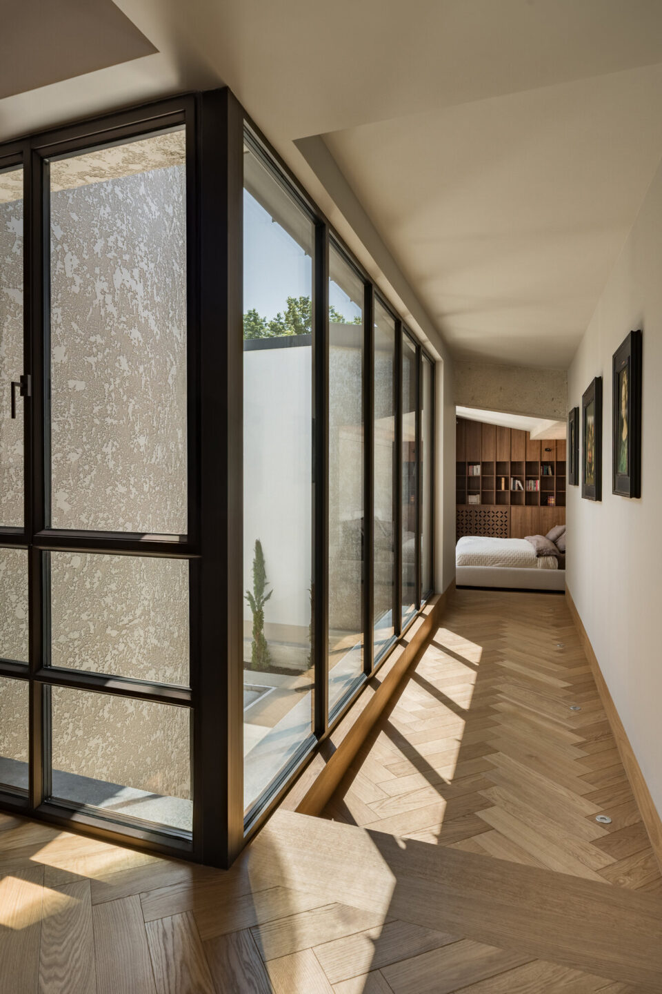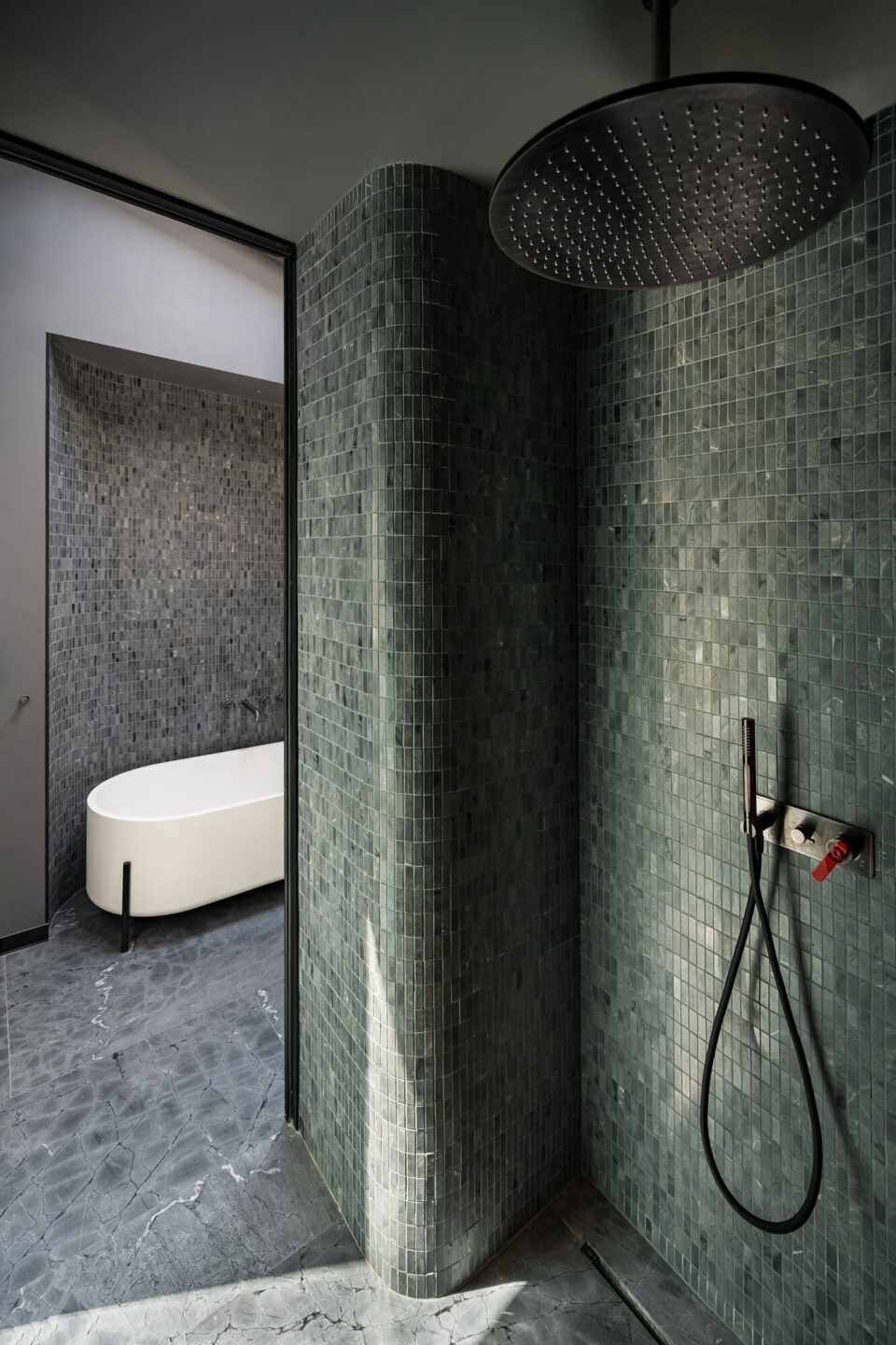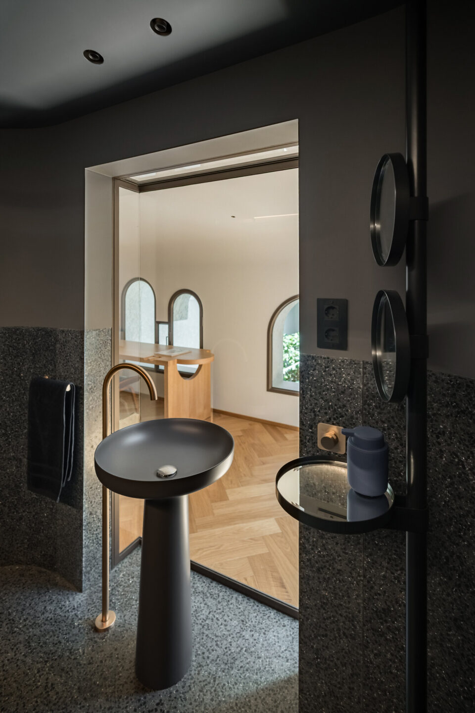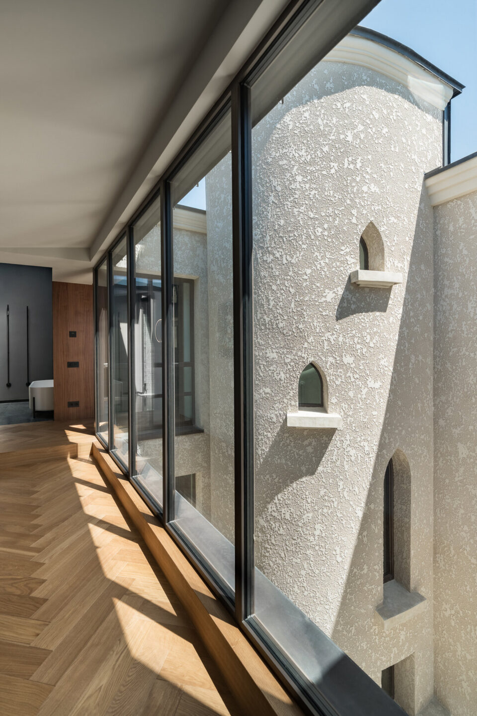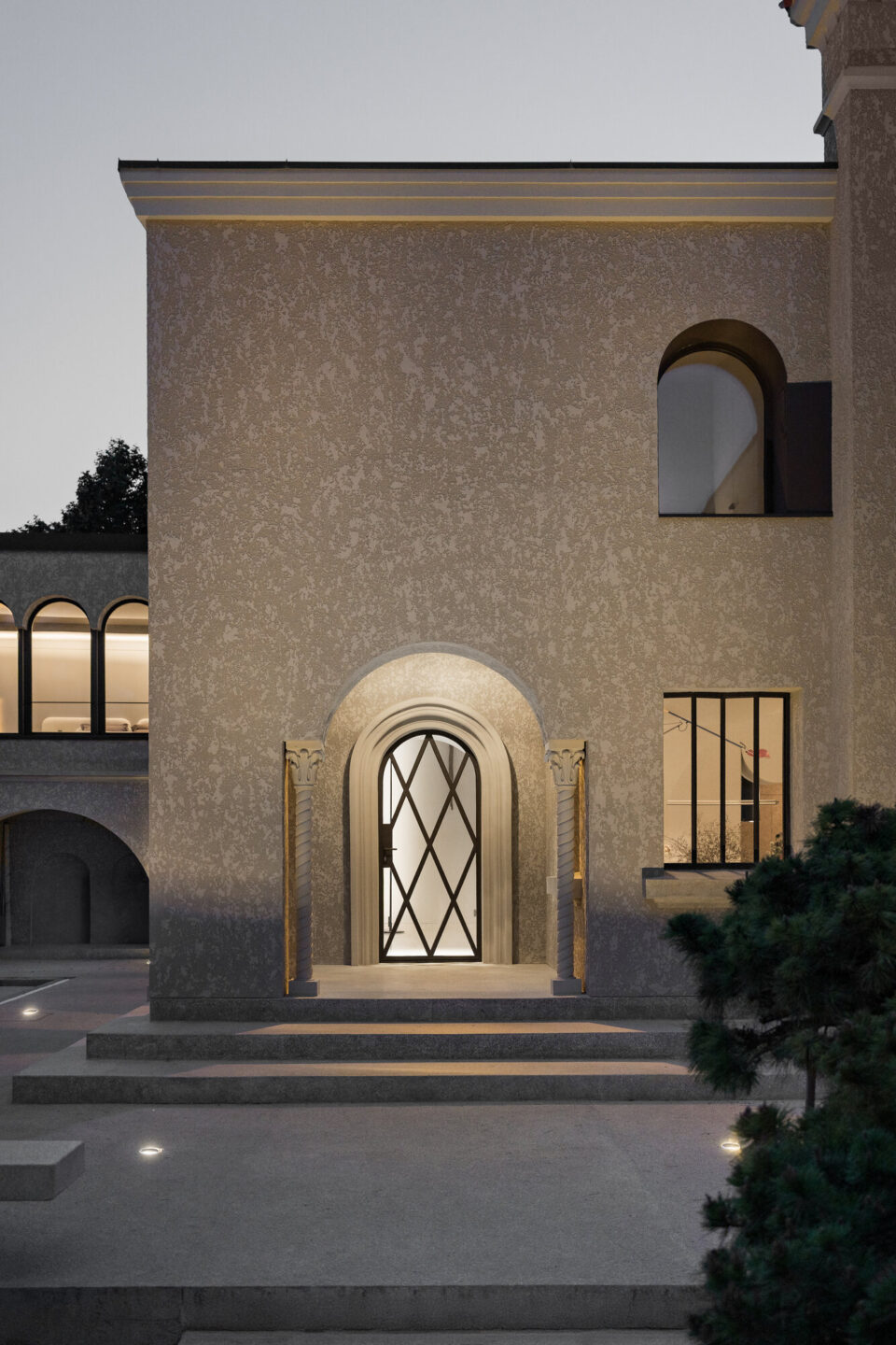 O vilă construitǎ acum un secol, în Bucureşti, în stilul florentin-maur, a renăscut la capătul a cinci ani de renovări. A fost reconfigurată la interior și parțial la exterior, dar a pǎstrat arhitectura originalǎ, care a căpătat un aer modern. A devenit o bijuterie arhitecturală, în care tehnologia și funcționalitatea sunt susținute prin spațiu, proiectul fiind premiat anul acesta la Anuala de Arhitectură. Un potențial ascuns și diminuat prin modificări și adăugări succesive Stilul florentin maur combină arhitectura renascentistă italiană cu elemente cu influență islamică, fiind caracterizat de tencuiala de calcio vecchio stropită sau amprentată, coloanele cu fus răsucit și capitel floral, care acompaniau arcadele sau ferestrele, golurile în arc, arc frânt sau arc turtit, consolele cu contraforți și glafurile proeminente. Deși modul în care a ajuns în România este incert, acest stil arhitectural se regăsește des în Bucureștiul interbelic, în clădiri construite pentru personalități ale vieții politice și sociale interbelice, dar și pentru familii bogate de origine străină. Vila de față se încadrează în acest stil și a fost inițial configurată, în cea mai mare parte, cu parter, un mic subsol și parțial mansardă cu pod, plafoane destul de joase și spații modeste. Construită în mai multe etape, a suferit adăugări și modificări care au generat incoerență, multe compartimentări, dar și probleme structurale. Curtea nu era mai prejos: un foișor și un garaj ocupau spațiul, dar la garaj noul proprietar a decis să renunțe. Nici podul de peste sufragerie și seră nu şi-a mai gǎsit locul în noul proiect, ceea ce a oferit posibilitatea, în timpul renovării, de extindere pe verticală și de a lucra cu înălțimea. Aspectul final al casei, după cinci ani de renovări. Provocarea pentru arhitecții proiectului – Eliza Yokina, Andrei Butuşinǎ, Adrian Perdica şi Magda Vieriu de la Cumulus Architecture – a fost reintegrarea arhitecturii originale într-o clădire complet reconfigurată la interior și parțial la exterior, adaptată cerințelor moderne și în care tehnologia și funcționalitatea să fie susținute în spațiu. Procesul a fost unul de durată: a început în 2020 și a implicat trei autorizații de construire, din care două pentru corpul principal și una pentru extinderea foișorului și construirea pasarelei. Volumul principal a fost extins pe verticală, ferestrele cu arcade au pierdut parapetul, iar fereastra de la stradă a fost reconfigurată pentru a primi mai multă lumină de la răsărit. Arhitectura nu a avut de suferit însă, elementele definitorii ale stilului maur fiind păstrate în mare parte. Vila are în continuare tencuială de calcio vecchio stropită sau amprentată, coloanele cu fus răsucit și capitel floral care acompaniau arcadele sau ferestrele, golurile în arc, arc frânt sau arc turtit, console cu contraforți și glafuri proeminente. Noua variantă combină arhitectura și funcționalitatea Reconfigurarea spațială în întreaga vilă a fost necesară pentru reorganizarea funcțională și pentru a aduce amploare și lumină spațiilor. Astfel, au fost create două spații majore pe verticală – orangeria și sufrageria, ele devenind zonele de locuit cele mai reprezentative ale casei, alături de living și de foișorul din exterior. Spațiul sufrageriei este traversat de o cursivă metalică în care ajunge scara principală și care facilitează legătura între cele două dormitoare ale casei. Zona matrimonială se află în spatele casei, iar în dormitor, suprapus peste foișor, ajungi printr-o pasarelă metalică suspendată și vitrată pe o latură, între cele două corpuri de clădire. Astfel, etajul este privat, însă existǎ conexiune vizuală către toate spațiile de zi și către exterior. Dacă spațiile principale conțin lumina ca element central, băile sunt realizate în antiteză, cu materiale închise la culoare și lumină dozată. Într-un astfel de cadru, chiuveta cu iluminare Mario Piva redefinește relația cu lumina, în spațiul băii. Dealtfel, lumina a fost un subiect principal al amenajarii, fiind cerința aparte a beneficiarului de a exploata cât de mult posibil acest element natural, pentru ca toate zonele să poată fi iluminate pe tot parcursul zilei și a anului. Materiale puține, cu impact vizual maxim Amenajarea interioară se rezumă la puținele materiale specifice perioadei de construire a casei: mozaicuri, parchet, metal, piatră și gleturi ori tencuieli decorative, uneori interpretate în notă contemporană, dar perfect integrate în amenajare. Pe acest fundal, mobilierul din lemn închis și accentele negre construiesc un ambient funcțional și plăcut, adaptat timpurilor moderne. În câteva locuri, betonul aparent sablat este la vedere, aducînd o suprinzătoare notă industrială într-un spațiu care îmbină influența istorică și designul contemporan. Piatra și lemnul se regăsesc în piesele de mobilier din vilă, păstrând eleganța amenajării într-un stil atemporal. La exterior mozaicul și mozaicul spălat completează tencuiala de var amprentată, care a fost refăcută pe toate fațadele și în interior, în orangerie. Tâmplăria a fost proiectată special pentru această locație, din profil de oțel cu rupere de punte termică. Nota naturală dorită de proprietari prin amenajarea orangeriei se trasnpune apoi în exterior. Grădina exterioară continuă limbajul casei prin plante specifice mediteraneene, iar curtea oglindeşte cerul într-o oglindă de apă. Acest proiect primit premiul secțiunii Arhitectura amenajărilor interioare / amenajări rezidențiale și a fost nominalizat la secțiunea Arhitecturǎ construitǎ/ Arhitectura locuinței individuale, în cadrul Anualei de Arhitecturǎ 2025. Foto: Cătălin Georgescu Distribuie articolul pe: