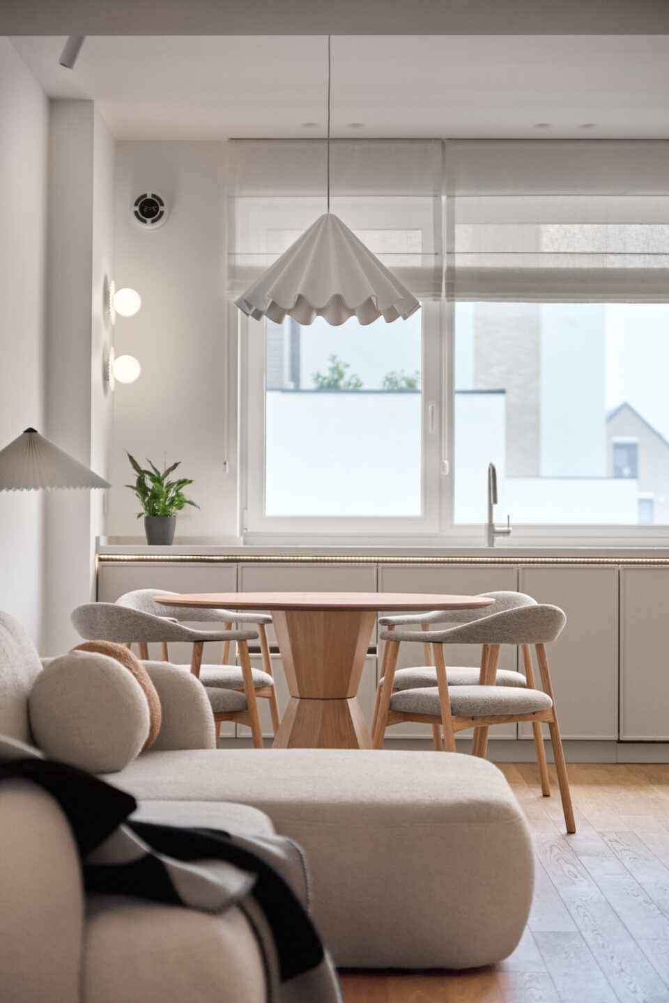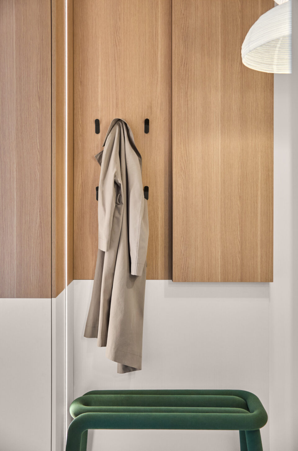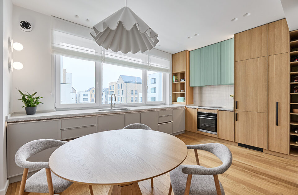 Echilibrul dintre util și poetic se regǎseşte într-un duplex cu patru camere din București, care îmbinǎ rigoarea scandinavă și calmul esteticii japoneze. Formulă discretă de amenajare, fără trimiteri explicite la un anume stil, a fost premiată cu BIG SEE Interior Design Award 2026. Temele abordate în acest proiect de design variază de la verticalitatea subtilă la stratificarea luminii, într-o manieră discretă și reconfortantă, care transformă spațiul de 120 mp într-un ambient caracterizat prin coerență funcțională. Tema verticală conduce întregul proiect. Plăcile cu fibră orientată pe înălțime și corpurile suspendate ritmează bucătăria, iar lamelele din lemn mat de pe mobilierul din living și dormitor aduc în spațiu influența japoneză, evocând panourile shoji. Astfel, spațiul devine mai înalt, mai aerisit, cu o textură care pe care lumina laterală o evidențiază ușor. Fronturile curate, proporțiile atent calibrate și o paletă de verde pudrat şi lemn deschis construiesc un fundal liniștit, în care detaliile fine se dezvăluie fără ostentație. Holul dublu-înălțime e tratat ca un alcov luminos, unde suspendarea corpurilor la cote diferite rupe senzația de gol vertical și introduce un joc grafic subtil. Cablurile negre și abajururile în tonuri de lut aduc un accent cald, temperând albul pereților. Lemnul și lumina sunt actori importanți scenariului de design Mobilierul, proiectat cât mai funcțional, ascunde depozitări, lasă pardoseala liberă și păstrează liniile continue. Asociat cu iluminarea inteligent plasată, compune un spațiu aerisit, contemporan, funcțional. În dormitor, living și dressing se regăsește același limbaj vizual: suprafețe mate, întâlniri curate între materiale și câte un detaliu de tâmplărie aparent simplu, dar executat cu minuțiozitate. Acest aspect se regăsește și în canturile realizate perfect la unghiuri de 45° sau în tapetul aplicat pe placările de mobilier. În dressingul vitrat, volumul transparent funcționează ca un obiect-scenă: oglinzi plane și panouri de sticlă sablată estompează contururile, iar tuburile LED suspendate accentuează verticala. Reflexiile multiplică lumina și adaugă profunzime, fără a sufoca prin opulență. De la liniile LED care urmăresc geometriile principale, la suspensia care marchează diningul, iluminatul e gândit să aducă intimitate și să aducă în prim-plan texturile naturale. Locuința explorează echilibrul dintre util și poetic: planimetrie eficientă, materiale autentice, gesturi juste și detalii neașteptate. Minimalismul nordic și spiritul japonez se intersectează, livrând un interior contemporan, cald și ancorat în nevoile cotidiene, fără etichete declarative. Proiectul – dezvoltat de arhitecții Cristiana Zgripcea și Decebal Teodorescu – se numără printre cele înscrise la Anuala de Arhitecturǎ, ediția 2025, la secțiunea Amenajǎri interioare/ Amenajǎri rezidențiale, fiind premiat internațional cu BIG SEE Interior Design Award 2026. Foto: Artur Tintu CITEȘE ȘI: Proiectul Lunaria: locuința care împrumută din eleganța unei flori Loftul din Constanța unde marea problemă a devenit element central de design Cum un dulap poate defini conceptul de amenajare a unui apartament de lux Distribuie articolul pe: