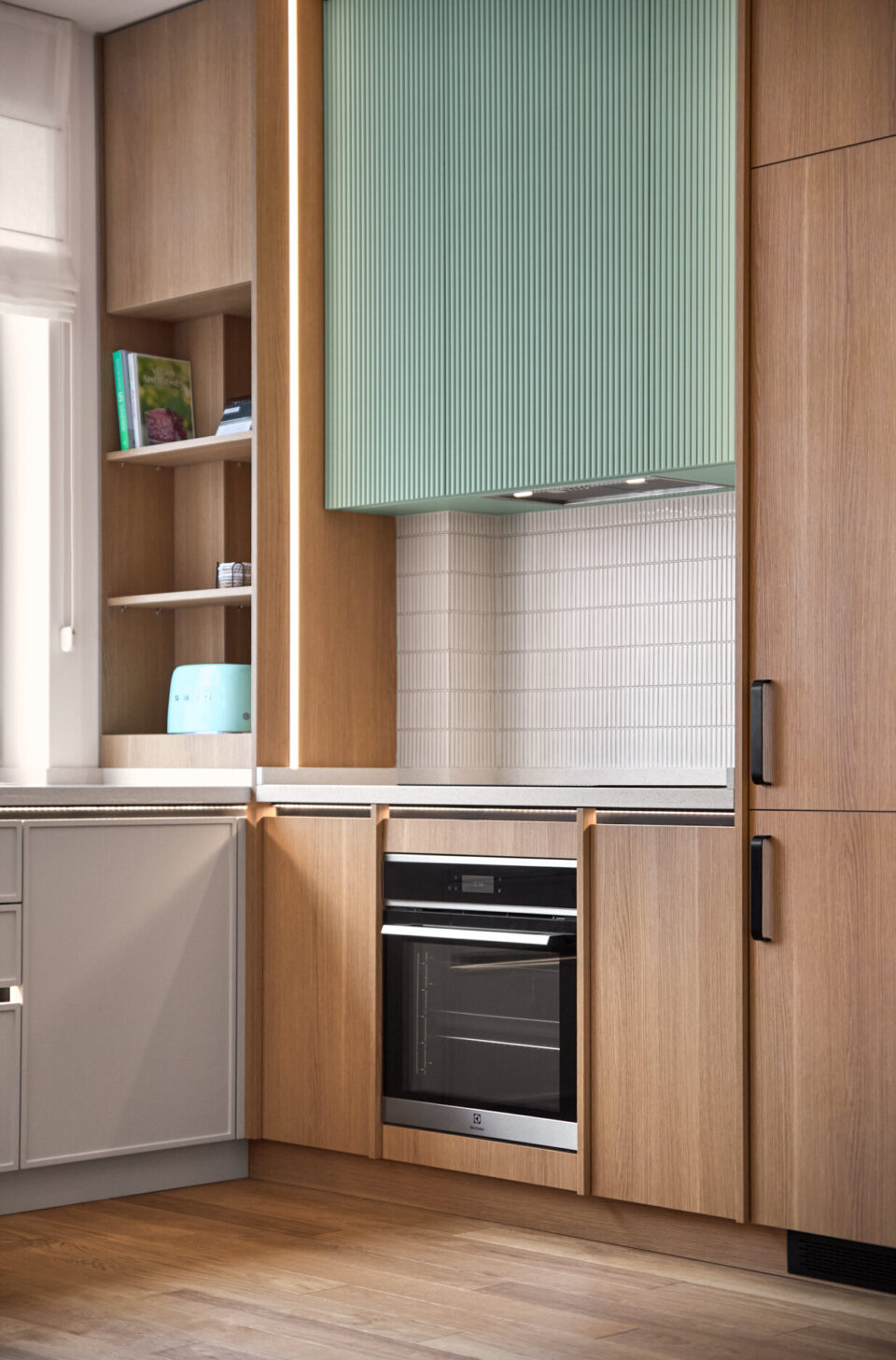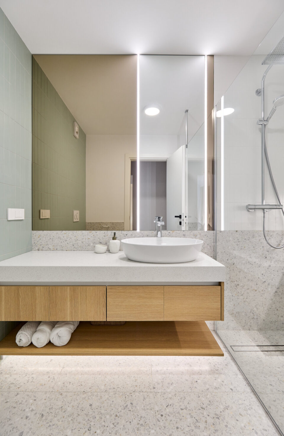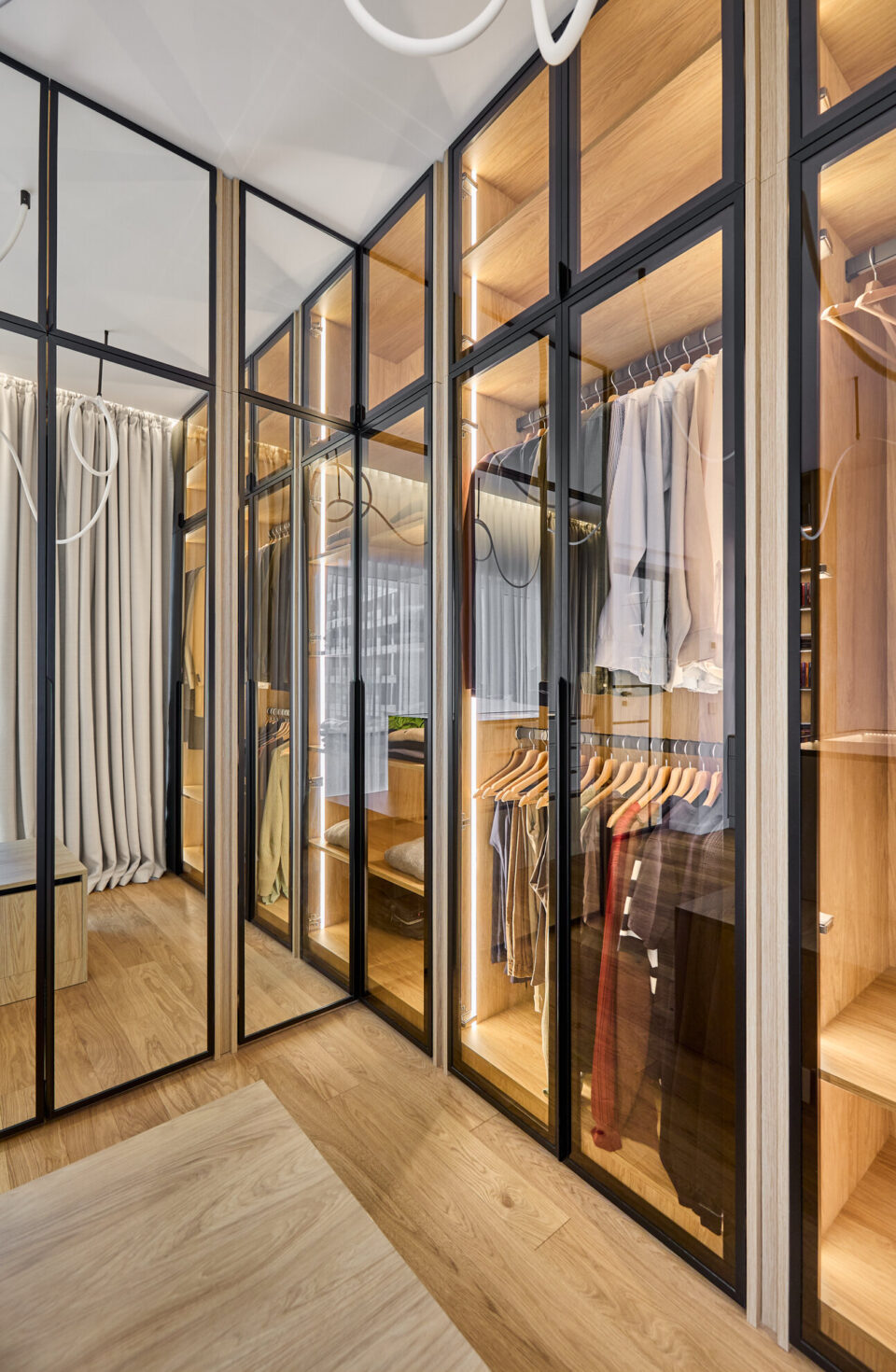 Echilibrul dintre util și poetic se regǎseşte într-un duplex cu patru camere din București, care îmbinǎ rigoarea scandinavă și calmul esteticii japoneze. Formulă discretă de amenajare, fără trimiteri explicite la un anume stil, a fost premiată cu BIG SEE Interior Design Award 2026. Temele abordate în acest proiect de design variază de la verticalitatea subtilă la stratificarea luminii, într-o manieră discretă și reconfortantă, care transformă spațiul de 120 mp într-un ambient caracterizat prin coerență funcțională. Tema verticală conduce întregul proiect. Plăcile cu fibră orientată pe înălțime și corpurile suspendate ritmează bucătăria, iar lamelele din lemn mat de pe mobilierul din living și dormitor aduc în spațiu influența japoneză, evocând panourile shoji. Astfel, spațiul devine mai înalt, mai aerisit, cu o textură care pe care lumina laterală o evidențiază ușor. Fronturile curate, proporțiile atent calibrate și o paletă de verde pudrat şi lemn deschis construiesc un fundal liniștit, în care detaliile fine se dezvăluie fără ostentație. Holul dublu-înălțime e tratat ca un alcov luminos, unde suspendarea corpurilor la cote diferite rupe senzația de gol vertical și introduce un joc grafic subtil. Cablurile negre și abajururile în tonuri de lut aduc un accent cald, temperând albul pereților. Lemnul și lumina sunt actori importanți scenariului de design Mobilierul, proiectat cât mai funcțional, ascunde depozitări, lasă pardoseala liberă și păstrează liniile continue. Asociat cu iluminarea inteligent plasată, compune un spațiu aerisit, contemporan, funcțional. În dormitor, living și dressing se regăsește același limbaj vizual: suprafețe mate, întâlniri curate între materiale și câte un detaliu de tâmplărie aparent simplu, dar executat cu minuțiozitate. Acest aspect se regăsește și în canturile realizate perfect la unghiuri de 45° sau în tapetul aplicat pe placările de mobilier. În dressingul vitrat, volumul transparent funcționează ca un obiect-scenă: oglinzi plane și panouri de sticlă sablată estompează contururile, iar tuburile LED suspendate accentuează verticala. Reflexiile multiplică lumina și adaugă profunzime, fără a sufoca prin opulență. De la liniile LED care urmăresc geometriile principale, la suspensia care marchează diningul, iluminatul e gândit să aducă intimitate și să aducă în prim-plan texturile naturale. Locuința explorează echilibrul dintre util și poetic: planimetrie eficientă, materiale autentice, gesturi juste și detalii neașteptate. Minimalismul nordic și spiritul japonez se intersectează, livrând un interior contemporan, cald și ancorat în nevoile cotidiene, fără etichete declarative. Proiectul – dezvoltat de arhitecții Cristiana Zgripcea și Decebal Teodorescu – se numără printre cele înscrise la Anuala de Arhitecturǎ, ediția 2025, la secțiunea Amenajǎri interioare/ Amenajǎri rezidențiale, fiind premiat internațional cu BIG SEE Interior Design Award 2026. Foto: Artur Tintu CITEȘE ȘI: Proiectul Lunaria: locuința care împrumută din eleganța unei flori Loftul din Constanța unde marea problemă a devenit element central de design Cum un dulap poate defini conceptul de amenajare a unui apartament de lux Distribuie articolul pe: