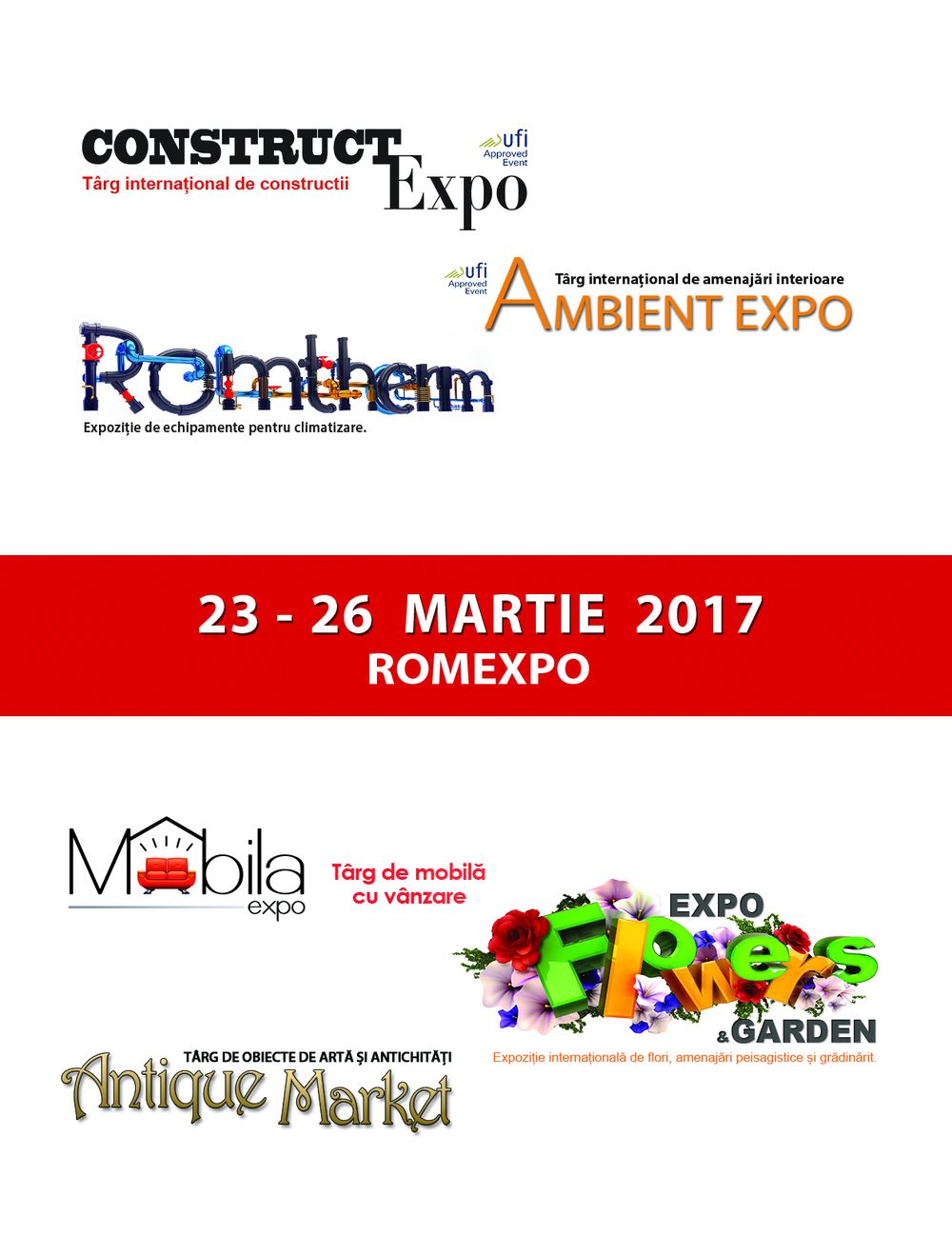 Romexpo organizează între 23 și 26 martie 2017 cele mai importante târguri din domeniul construcţiilor, instalaţiilor, mobilei, ambientării, designului interior sau exterior și grădinăritului. Companii autohtone şi internaţionale îşi vor prezenta produsele şi serviciile pe parcursul a patru zile de maraton expoziţional, la: Construct Expo, Ambient Expo, Mobila Expo, Romtherm, Expo Flowers & Garden, Antique Market. CONSTRUCT EXPO este cel mai mare târg de tehnologii, echipamente, utilaje şi materiale pentru construcţii din România. Ediția 2017 reuneşte peste 150 de firme din domeniu, reprezentând un punct de atracţie pentru antreprenorii şi experţii în construcţii, dar şi pentru publicul larg interesat de echipamente şi utilaje pentru uz propriu. Pe langă componenta expozițională, evenimentul generează și o serie de activități conexe menite să aducă laolaltă asociații, autorități de la nivelul administrației centrale, producători, importatori și distribuitori de produse și servicii dedicate tuturor categoriilor de construcții. Astfel, pe parcursul zilelor CONSTRUCT EXPO au loc conferințe și seminarii precum: Managementul deșeurilor în construcții – prevederi legislative și modalități de aplicare (23 martie – conferință susținută de Asociația Producătorilor de Materiale de Construcții – APMCR cu sprijinul Ministerului Mediului), Green Homes – locuințele verzi (23 martie, workshop organizat de Romania Green Building Council – ROGBC, în cadrul căruia se vor prezenta soluții dedicate clădirilor verzi), Noua criză din piața construcțiilor (24 martie, conferință organizată de IBC Focus, care aduce în prim-plan: diverse modalități de a „spiona” concurența pentru a deveni competitiv pe piață, despre secretul multinaționalelor privind acapararea a 50% din afacerile de resort sau despre elementele comune între construcțiile din România și piața pantofilor din Africa). Mai multe informații despre seminariile și conferințele din cadrul târgului se pot obține prin accesarea website-ului www.constructexpo.ro, secțiunea “Vizitatori – Manifestări conexe”. AMBIENT EXPO (www.ambient-expo.ro) este evenimentul „răspunsurilor” la întrebarea Cum putem amenaja modern și util locuința, biroul, spațiul din jurul clădirilor în care muncim sau trăim? Desfășurat tot între 23 și 26 martie, la Romexpo, Ambient Expo reunește peste 80 de companii din țări ca: Egipt, Grecia, Italia, Moldova, România, Spania, Turcia, Ucraina, care prezintă tendințele pe piața amenajărilor interioare şi exterioare. Târgul internaţional de produse şi sisteme pentru amenajări interioare şi exterioare, decoraţiuni, mobilier şi piscine aduce în atenţia vizitatorilor noutățile anului în materie de tapet, perdele şi draperii, fiind prezenţi producători şi importatori ai celor mai cunoscute şi căutate branduri mondiale. Vizitatorii se pot documenta şi obţine consiliere privind amenajările interioare de la furnizorii consacraţi de: tapet, textile decorative (perdele, draperii, feţe de masă, covoare), corpuri de iluminat, vopsele, tencuieli, parchet, faianță, șeminee, piscine și alte produse sau accesorii decorative. Din cadrul AMBIENT EXPO nu lipsesc seminariile și conferințele susținute de Universitatea de Arhitectură și Urbanism Ion Mincu pe teme privind obiectul arhitectural și arhitectura teritoriului. La Ambient Expo e va avea loc, pe 24 martie, orele 11:00 – 13:00 (Pavilionul C1 – Romexpo) conferința Interior, Exterior, Tendințe, organizată de Romexpo în parteneriat cu DIZAINĂR și Asociația Atelierul de Creație. Târgul de mobilă cu vânzare Mobila Expo (www.mobila-expo.ro), organizat în parteneriat cu Asociaţia Producătorilor de Mobilă din România (APMR), Asociaţia Clubul Român de Mobilă (ACRM) și Camera de Comerţ şi Industrie din România, reuneşte importante companii producătoare de mobilier, ce vor expune piese, accesorii si ansamble de mobilier la preturi avantajoase si stiluri variate, pornind de la clasic si modern pana la cel rustic sau retro-vintage. Evenimentul se adreseaza publicului larg, acelora care doresc să găsească și să achiziționeze la prețuri avantajoase, diverse tipuri de mobilier destinate locuinței sau biroului. Tendinţele în grădinărit sunt dictate de EXPO FLOWERS & GARDEN (www.expoflowers.ro). Evenimentul se adresează atât profesioniştilor (producători, comercianţi, horticultori, arhitecţi peisagişti, specialiştilor în unelte şi ornamente de gradină: arbuşti, pavaje, mobilier de grădină, sere) de pe piaţa de import şi distribuţie de flori, plante şi soluţii de amenajare şi întreţinere a spaţiilor verzi, cât şi publicului larg. Între 23 și 26 martie, peste 60 de companii din: Germania, Grecia, Italia si România vin cu oferte variate, promoții și consiliere despre ce flori, pomi și arbuști se poartă în amenajările interioare sau exterioare. Romtherm (www.romtherm.ro) va reuni pe durata a patru zile firme importante din domeniile aparaturii pentru încălzire, răcire, ventilaţie, aer conditionat, sisteme de conducte, izolaţii termice, pompe, armături, fitinguri şi robineţi. Pe întreaga perioadă a expoziției, vizitatorii interesaţi pot asista la prezentări și demonstrații ale tehnologiilor și inovațiilor propuse de către firmele participante, iar expozanţii pot găsi împreună soluţii la ultimele provocări tehnologice ale domeniului, în cadrul conferinţelor organizate de Romexpo şi partenerii săi. În paralel cu cea mai importantă manifestare expozițională de construcții din România, care reunește târgurile Construct Expo, Ambient Expo, Romtherm, Mobila Expo și Expo Flowers & Garden, în perioada 23 – 26 martie 2017, la Romexpo – Pavilionul C3, se va desfășura o nouă ediție a Concursului Național al Montatorilor de Pardoseli din România, c