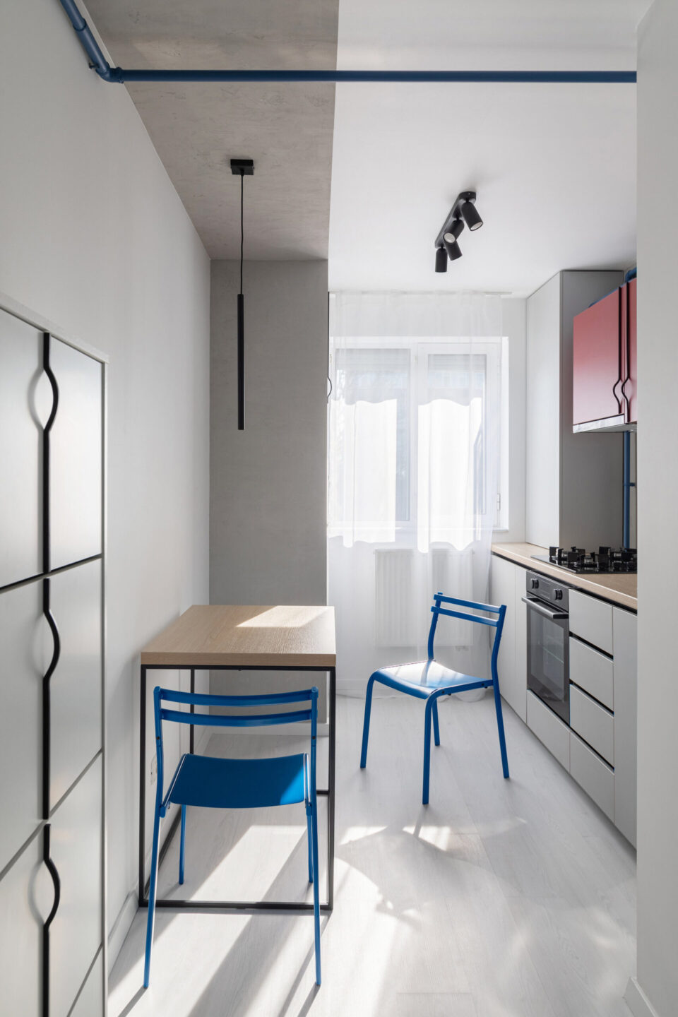 Patru ani de încercări și 5% albastru definesc amenajarea acestui apartament