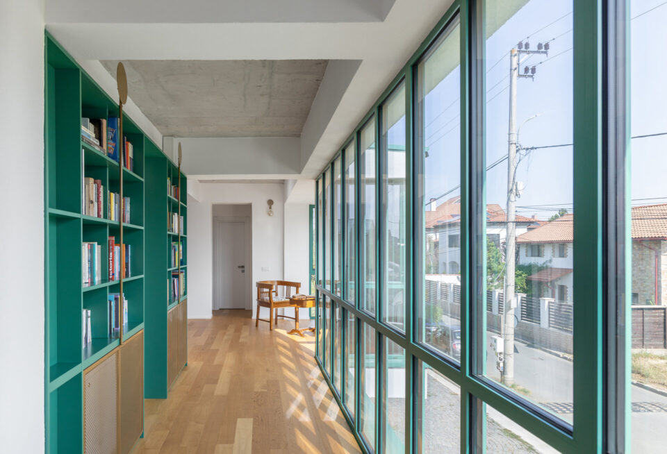 Spre stradă si spre lac, biblioteca încadrată în culoare, amintește – printr-o pararelă cu ceasul solar din exterior – că cititul este una din bucuriile care merită trăite. Sugestie pe care întreaga arhitectură, abordată atipic, încearcă, într-un fel sau altul, să o transmită.