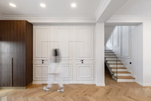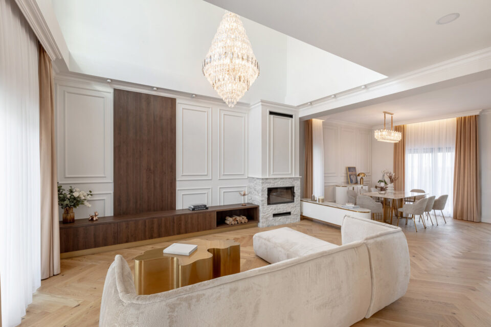 Luxul stilului neoclasic combinat cu modernul a creat un cadru caracterizat prin eleganță și delicatețe, într-o casǎ luminoasǎ din București, în culori pale. Este Proiectul Lunaria, casa care împrumută din eleganța unei flori. Proiectul Lunaria – dezvoltat de biroul de arhitectură și design Lou Design – pune în valoare morfologia locului, spațialitatea și funcționalitatea într-o abordare neoclasică cu accente luxury. Încă de la intrarea în casă, observi amplitudinea spațiului, caracterizat prin luminozitate și înălțime. Eleganța, finețea și frumusețea stilului clasic capătă valențe actuale: compoziția ambientului exploatează această înălțime, adăugând spațiului elemente puse în valoare prin lumină și prin textură. Corpurile de iluminat din cristal, precum și accentele aurii aduc nota elegantă, într-o alăturare reușită cu stilul modern al scării sau al șemineului. Regăsim contrapunerea elementelor moderne și clasice inclusiv în mobilier, unde fronturile frezate și pereții sculpturali se alătură ușilor cu fronturi plate și mânere minimaliste. Întreaga amenajare păstrează paleta de culori blânde – alb neutru, bejuri și maro, cu accente aurii – și jocul elegant de ancadramente și cornișe preluate din zona clasică. Catifeaua confirmă emblema eleganței, într-o logică specifică unui stil rafinat, neoclasic. Acest proiect a fost înscris la Anuala de Arhitecturǎ Bucureşti, ediția 2025, la secțiunea Amenajǎri interioare/ Amenajǎri rezidențiale. De aceastǎ casǎ s-a ocupat arhitecta Luiza Antonia Necula. Foto: Sabin Prodan CITEȘTE ȘI: O vilă maură din Bucureștiul interbelic renaște păstrându-și coerența în stil Un apartament unde culoarea, stilul și dualitatea dictează scenografia amenajării O spectaculoasă vilă de lux unde lumina și lemnul își scriu povestea de dragoste Distribuie articolul pe: