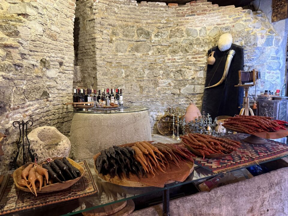 Chiar dacă bazarul are prețuri turistice, plimbarea printre șiragurile de churchkhela (un desert tradițional din nuci și must, care arată ca niște lumânări), murături, condimente, vinuri georgiene, costume tradiționale și multe obiecte vechi care decorează spațiul, este fascinantă și … gratuită.