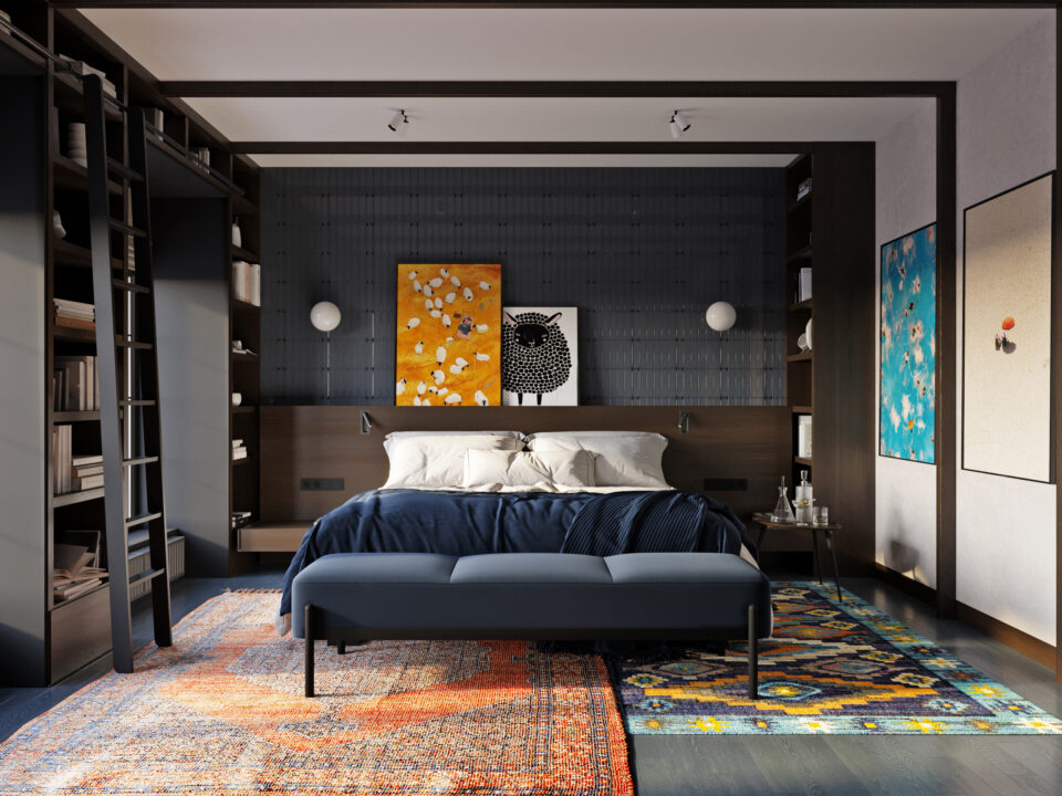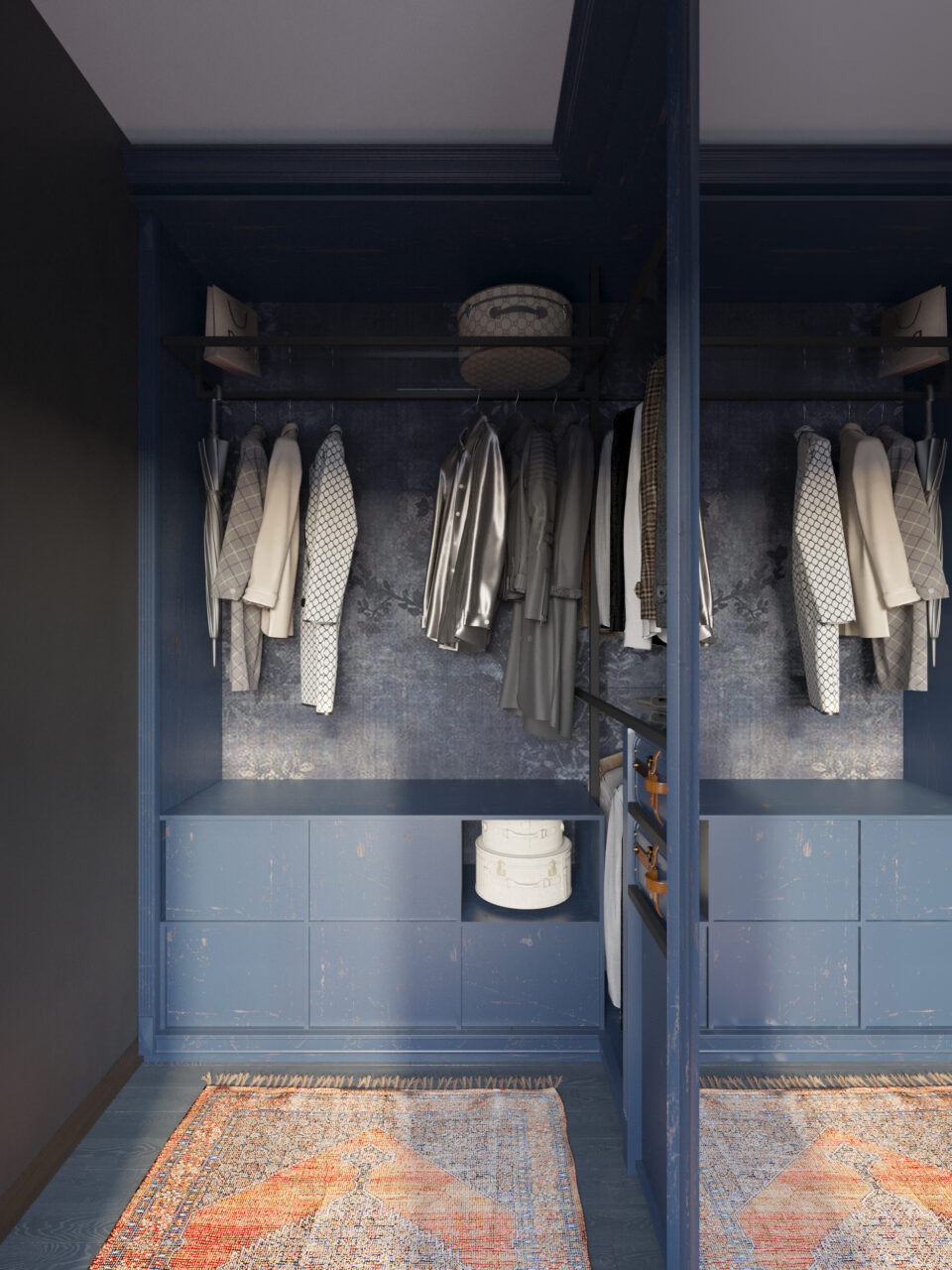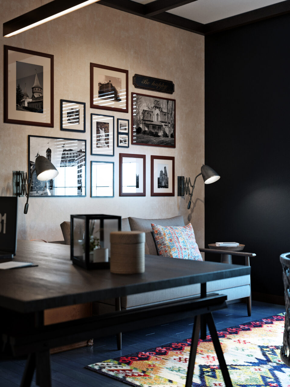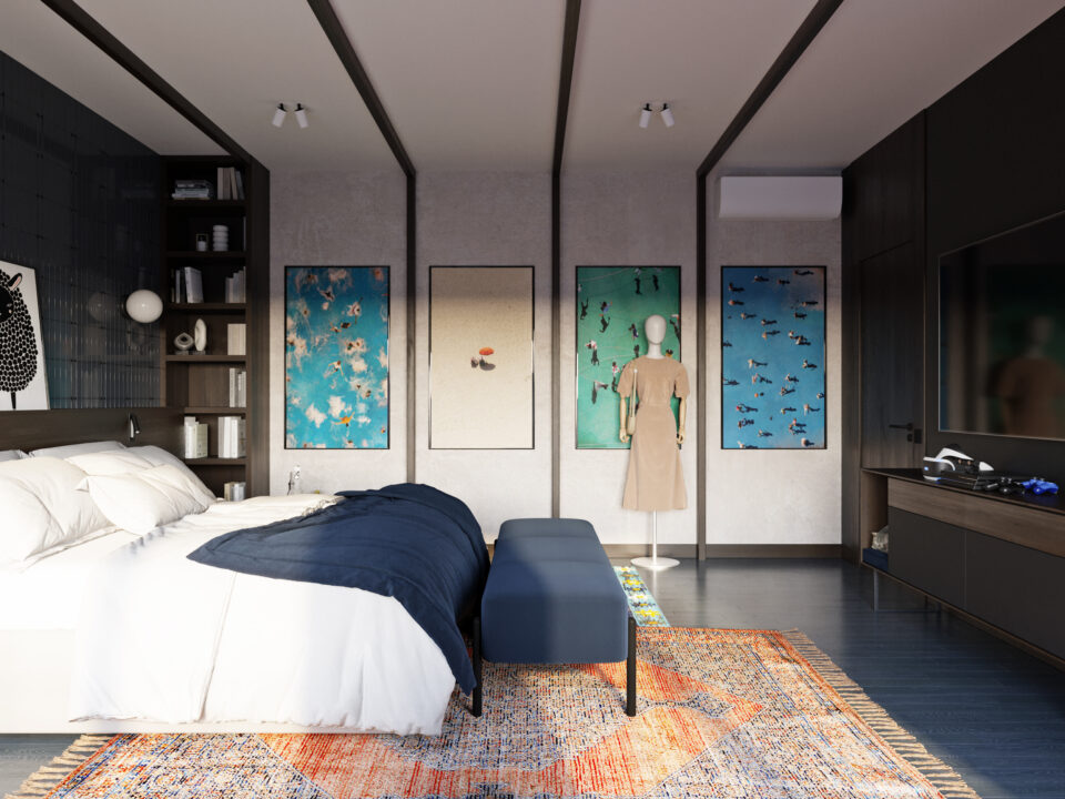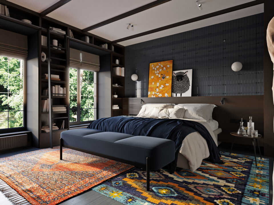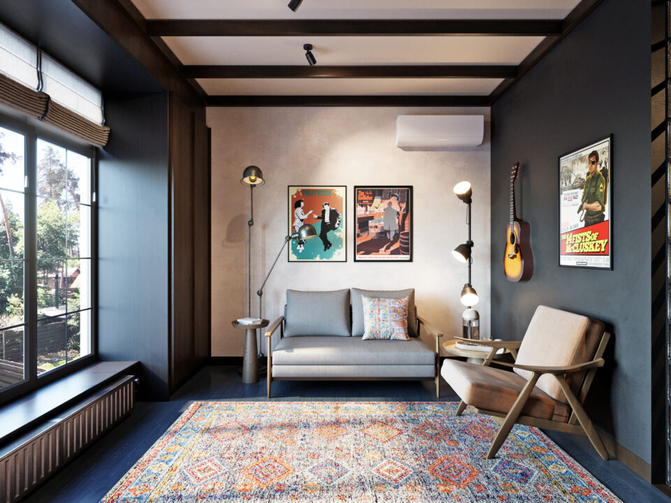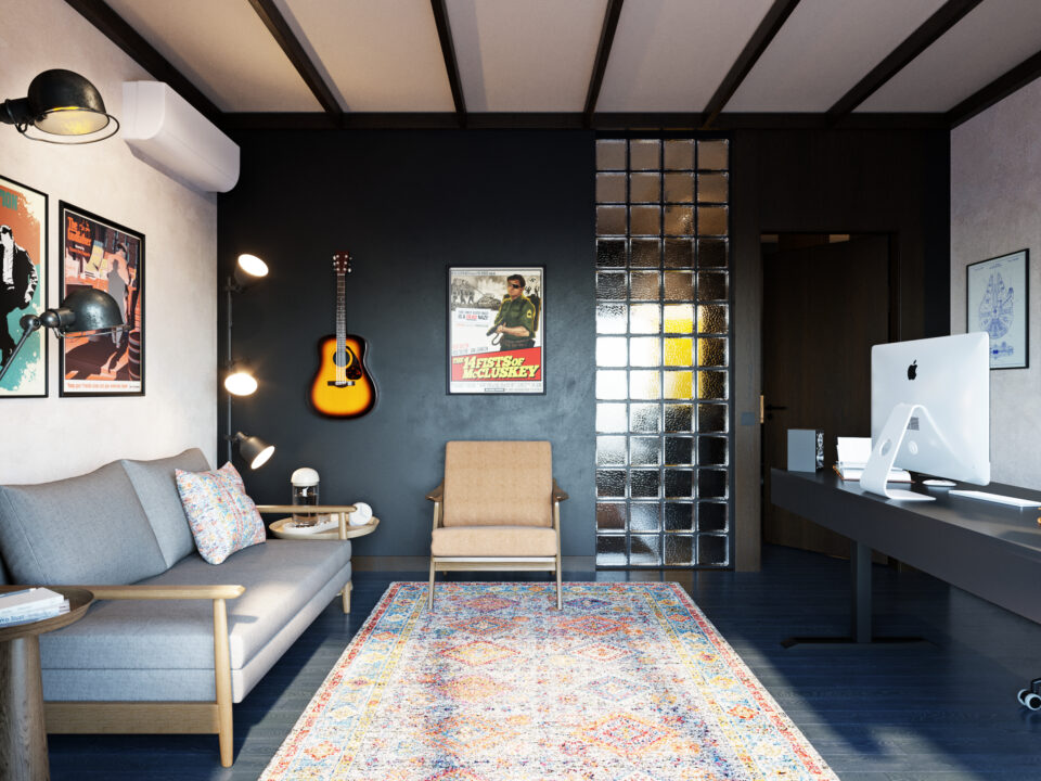 Ideea principală a fost de a crea un spațiu care să se simtă calm, împământat și personal. Volumele de lemn închis și tonurile de grafit formează un fundal liniștit pe care apar accente controlate – covoare cu modele populare, plăci albastre lucioase, opere de artă, verdeață și decor atent selecționat. Rezultatul este o casă care arată îndrăzneț în fotografii, dar asigura confort în viața reală. Iar acesta este cel mai bun truc în amenajarea unei oricărei case.