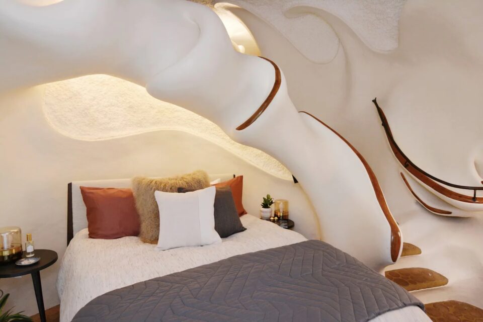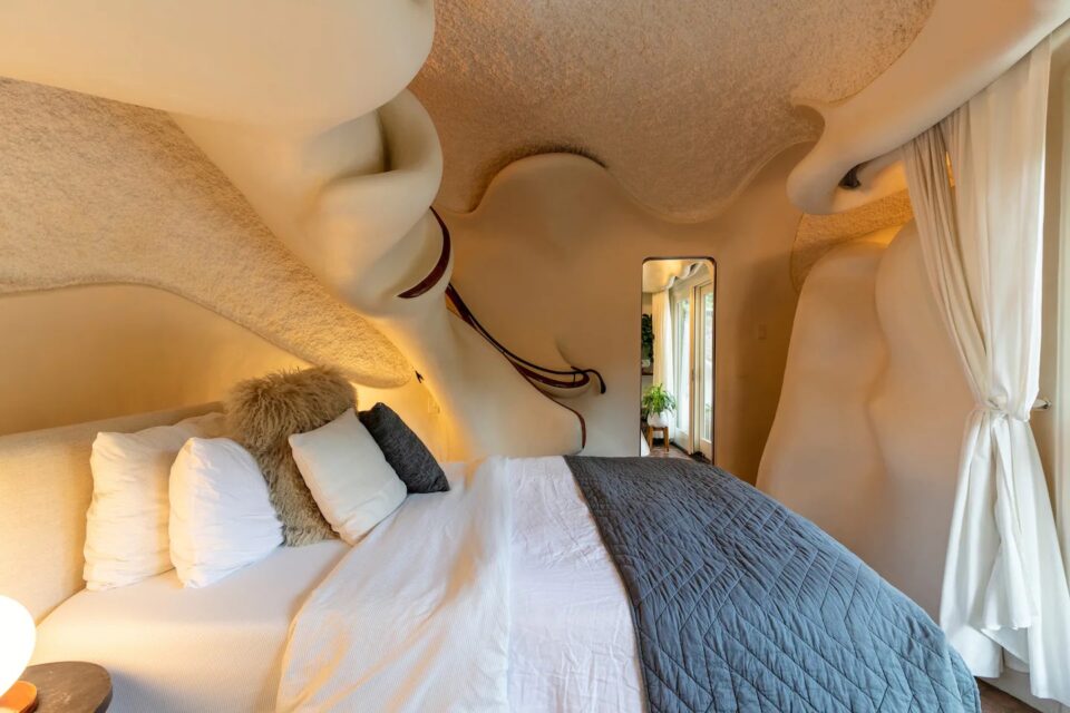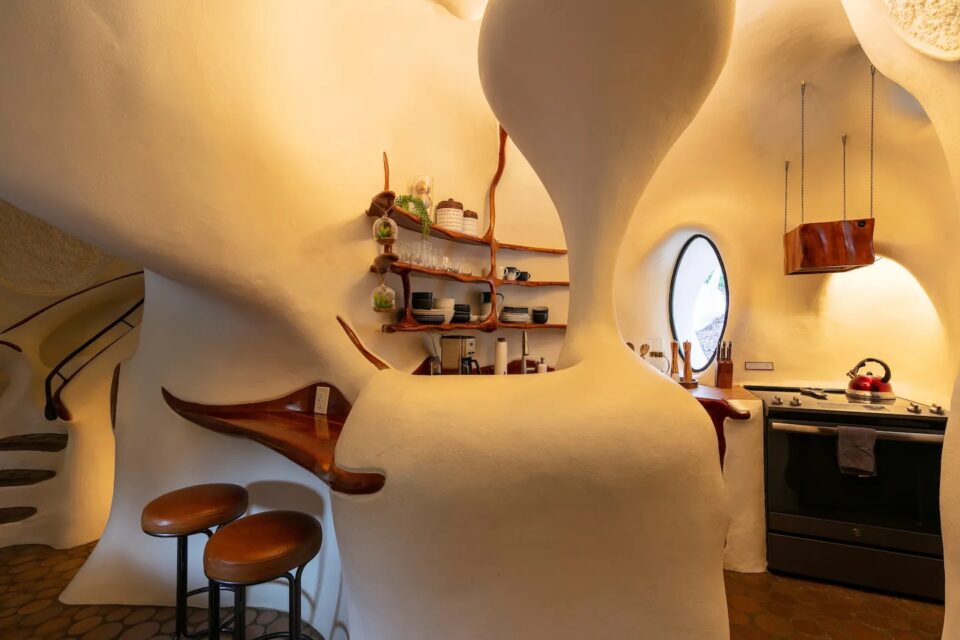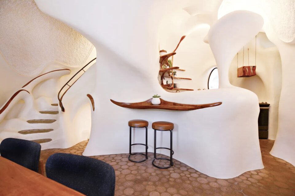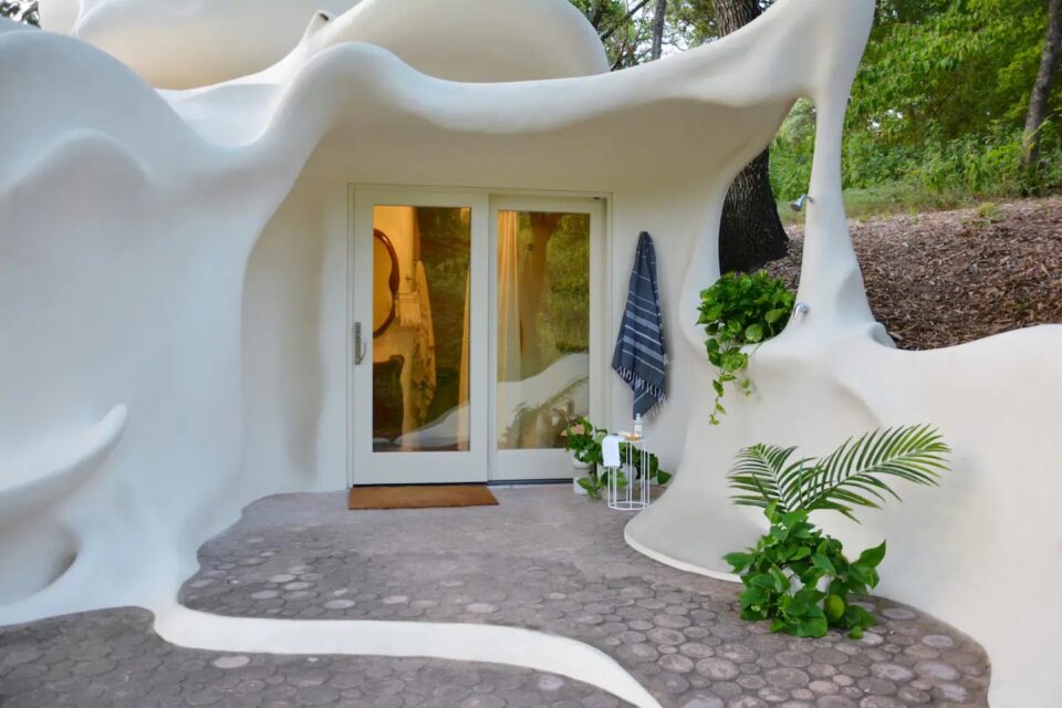 Într-o zonă de deal din Texas, o casă cu formă neregulată – devenită hotel – provoacă arhitectura clasică și designul interior la depășirea limitelor. Liniile organice și materialele atipice caracterizează Bloomhouse, o locuință pentru patru persoane, care se dovedește o contrucție atemporală, total în trend și după 50 de ani de la apariție. La începutul anilor 1970, Dalton Bloom și Charles Harke din Austin (Texas) au gândit o construcție îndrăzneață și durabilă, astfel că au creat Bloomhouse – o casă neobișnuită prin formele organice și materialele folosite. Construită pe dealurile din vestul orașului Austin, Bloomhouse a căutat să surprindă interacțiunea simbiotică dintre om și natură. Forma sa organică, care se ridică din pământ, imită fluxul aerului, curba vântului și creșterea și descreșterea blândă a melodiei naturii, într-un ritm familiar și fantastic totodată. Bloomhouse a fost construită cu metode și materiale neobișnuite: pornește cu forme de bază din armătură de oțel, acoperite cu straturi de spumă poliuretanică, sculptate apoi manual cu fierăstrăul, timp de șapte luni. Cochilia – pentru că, în final, forma exterioară se aseamănă cu o scoică – este finisată cu straturi de stuc de beton atât la interior, cât și la exterior. Rezultatul este o structură remarcabil de bine izolată și ecologică. Interioarele fluide modelează un stil de viață organic În interior, arhitectura fluidă înlocuiește pereții tradiționali, fiind incluse accente din lemn de cireș, rafturi și dulapuri sculptate in situ pentru a completa și a scoate în evidență formele naturale. Fără colțuri la vedere, această casa poate găzdui până la patru persoane, într-un mediu confortabil și cu forme organice. Tavanele sunt acoperite cu fibre naturale reciclate, fonoabsorbante. Plăci de beton lucrate manual și plăci ceramice, asemănătoare unor discuri de cedru tăiate la capăt, acoperă podelele atât la interior, cât și la exterior. Dormitorul principal are un design sculptural, pat queen-size, precum și un balcon privat și o baie proprie. Spațiile de dormit suplimentare și colțișoarele confortabile oferă flexibilitate pentru familiile mici sau pentru oaspeții suplimentari. Coborând pe scara în spirală, se deschide o zonă privată cu canapea extensibilă, cu o masă de toaletă și o ușă de terasă către grădină. Bucătăria are o formă atipică – mobilier pe colț rotunjit și cu rafturi deschise care se mulează pe forma organică a pereților, dar și cu o deschidere către zona de zi, unde un fel de masă cu două scaune de bar poate servi drept loc pentru micul dejun. Așa ciudată cum este, bucătăria are totși toate cele necesare, de la cuptor cu microunde, frigider și congelator și până la plită electrică și aparat pentru cafea. Construcția structurii – premiată ulterior la competiții de profil – a durat 11 ani și a fost considerată o capodoperă a arhitecturii contemporane încă de la deschidere. O restaurare temeinică, în 2017 și 2018, a readus Bloomhouse la gloria sa originală, transformând-o totodată într-o locație pentru închiriere pe termen scurt și lung. Forma atipică a clădirii are însă și aspecte mai puțin comode. Potrivit Airbnb, din cauza arhitecturii unice, a curbelor și a designului deschis, The Bloomhouse nu este potrivită pentru copiii sub 5 ani. Foto: Profimedia CITEȘTE ȘI: Wave House: unde arhitectura tropicală se lasă modelată de împrejurimi Arhitectura contrastelor în Norvegia, în restaurantul care coboară în mare Hotelul din copaci: camere suspendate în pădurea sălbatică din Suedia Distribuie articolul pe: