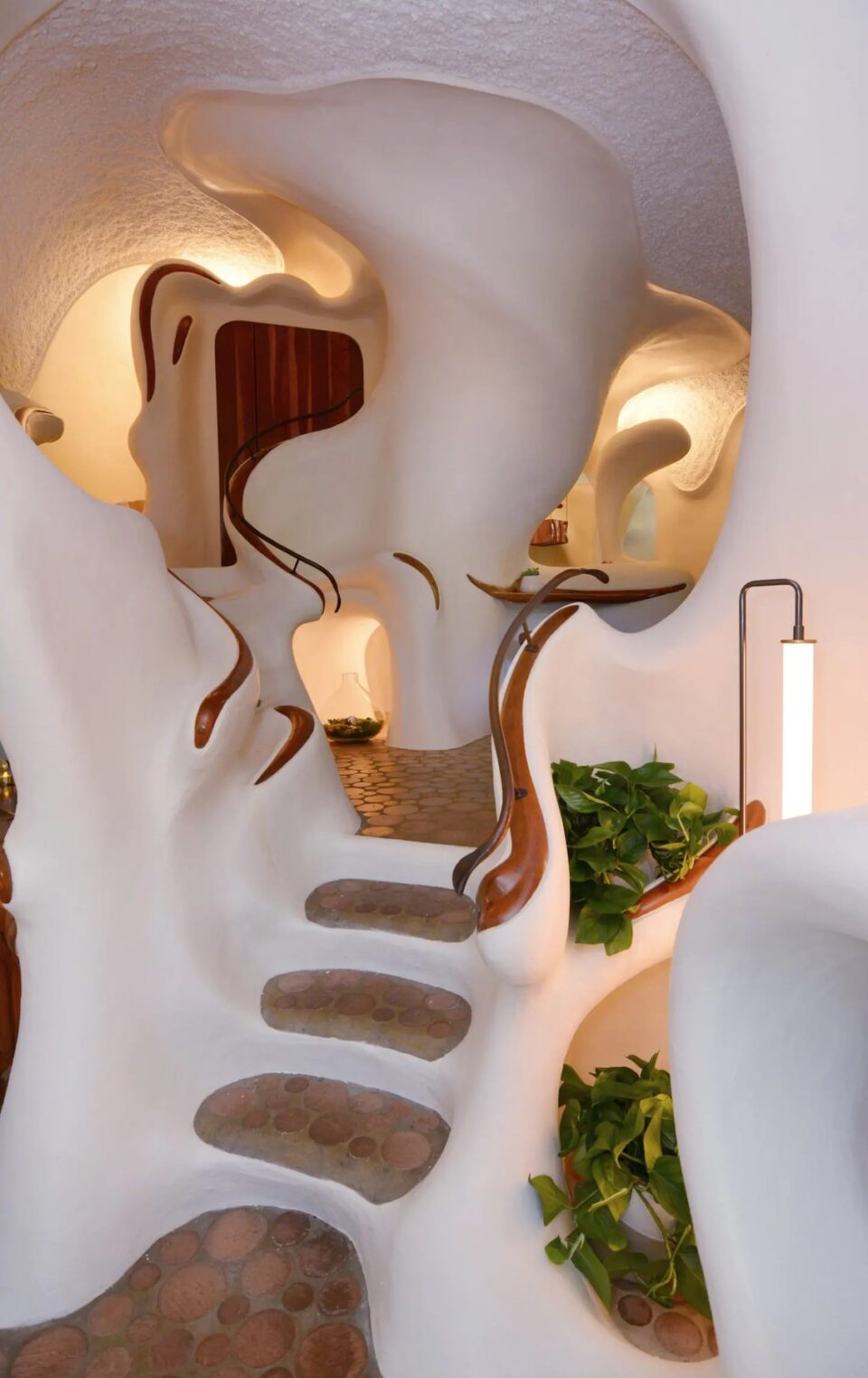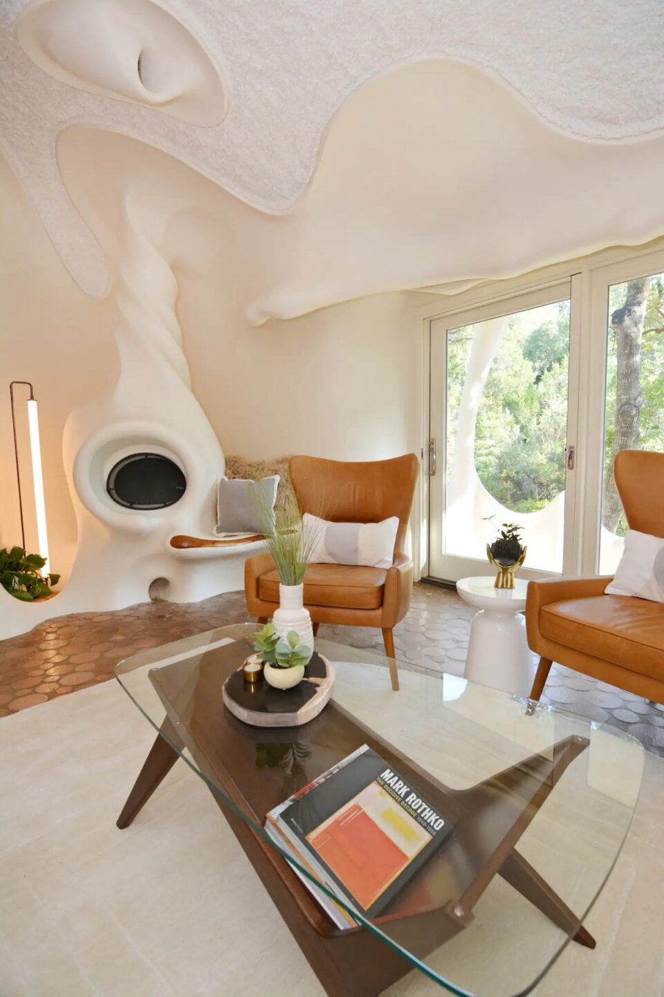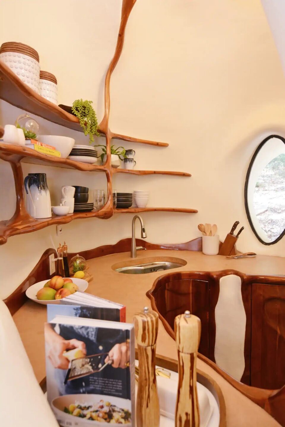 Într-o zonă de deal din Texas, o casă cu formă neregulată – devenită hotel – provoacă arhitectura clasică și designul interior la depășirea limitelor. Liniile organice și materialele atipice caracterizează Bloomhouse, o locuință pentru patru persoane, care se dovedește o contrucție atemporală, total în trend și după 50 de ani de la apariție. La începutul anilor 1970, Dalton Bloom și Charles Harke din Austin (Texas) au gândit o construcție îndrăzneață și durabilă, astfel că au creat Bloomhouse – o casă neobișnuită prin formele organice și materialele folosite. Construită pe dealurile din vestul orașului Austin, Bloomhouse a căutat să surprindă interacțiunea simbiotică dintre om și natură. Forma sa organică, care se ridică din pământ, imită fluxul aerului, curba vântului și creșterea și descreșterea blândă a melodiei naturii, într-un ritm familiar și fantastic totodată. Bloomhouse a fost construită cu metode și materiale neobișnuite: pornește cu forme de bază din armătură de oțel, acoperite cu straturi de spumă poliuretanică, sculptate apoi manual cu fierăstrăul, timp de șapte luni. Cochilia – pentru că, în final, forma exterioară se aseamănă cu o scoică – este finisată cu straturi de stuc de beton atât la interior, cât și la exterior. Rezultatul este o structură remarcabil de bine izolată și ecologică. Interioarele fluide modelează un stil de viață organic În interior, arhitectura fluidă înlocuiește pereții tradiționali, fiind incluse accente din lemn de cireș, rafturi și dulapuri sculptate in situ pentru a completa și a scoate în evidență formele naturale. Fără colțuri la vedere, această casa poate găzdui până la patru persoane, într-un mediu confortabil și cu forme organice. Tavanele sunt acoperite cu fibre naturale reciclate, fonoabsorbante. Plăci de beton lucrate manual și plăci ceramice, asemănătoare unor discuri de cedru tăiate la capăt, acoperă podelele atât la interior, cât și la exterior. Dormitorul principal are un design sculptural, pat queen-size, precum și un balcon privat și o baie proprie. Spațiile de dormit suplimentare și colțișoarele confortabile oferă flexibilitate pentru familiile mici sau pentru oaspeții suplimentari. Coborând pe scara în spirală, se deschide o zonă privată cu canapea extensibilă, cu o masă de toaletă și o ușă de terasă către grădină. Bucătăria are o formă atipică – mobilier pe colț rotunjit și cu rafturi deschise care se mulează pe forma organică a pereților, dar și cu o deschidere către zona de zi, unde un fel de masă cu două scaune de bar poate servi drept loc pentru micul dejun. Așa ciudată cum este, bucătăria are totși toate cele necesare, de la cuptor cu microunde, frigider și congelator și până la plită electrică și aparat pentru cafea. Construcția structurii – premiată ulterior la competiții de profil – a durat 11 ani și a fost considerată o capodoperă a arhitecturii contemporane încă de la deschidere. O restaurare temeinică, în 2017 și 2018, a readus Bloomhouse la gloria sa originală, transformând-o totodată într-o locație pentru închiriere pe termen scurt și lung. Forma atipică a clădirii are însă și aspecte mai puțin comode. Potrivit Airbnb, din cauza arhitecturii unice, a curbelor și a designului deschis, The Bloomhouse nu este potrivită pentru copiii sub 5 ani. Foto: Profimedia CITEȘTE ȘI: Wave House: unde arhitectura tropicală se lasă modelată de împrejurimi Arhitectura contrastelor în Norvegia, în restaurantul care coboară în mare Hotelul din copaci: camere suspendate în pădurea sălbatică din Suedia Distribuie articolul pe:
