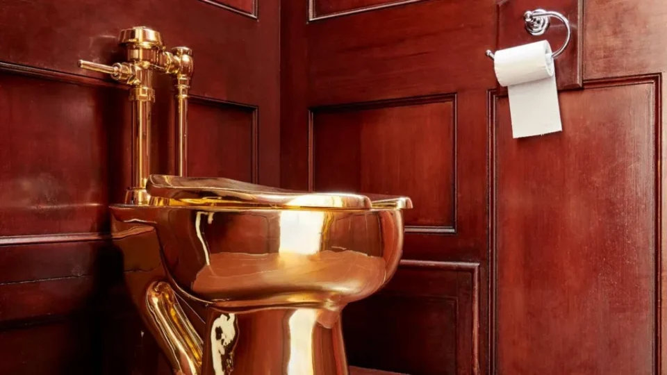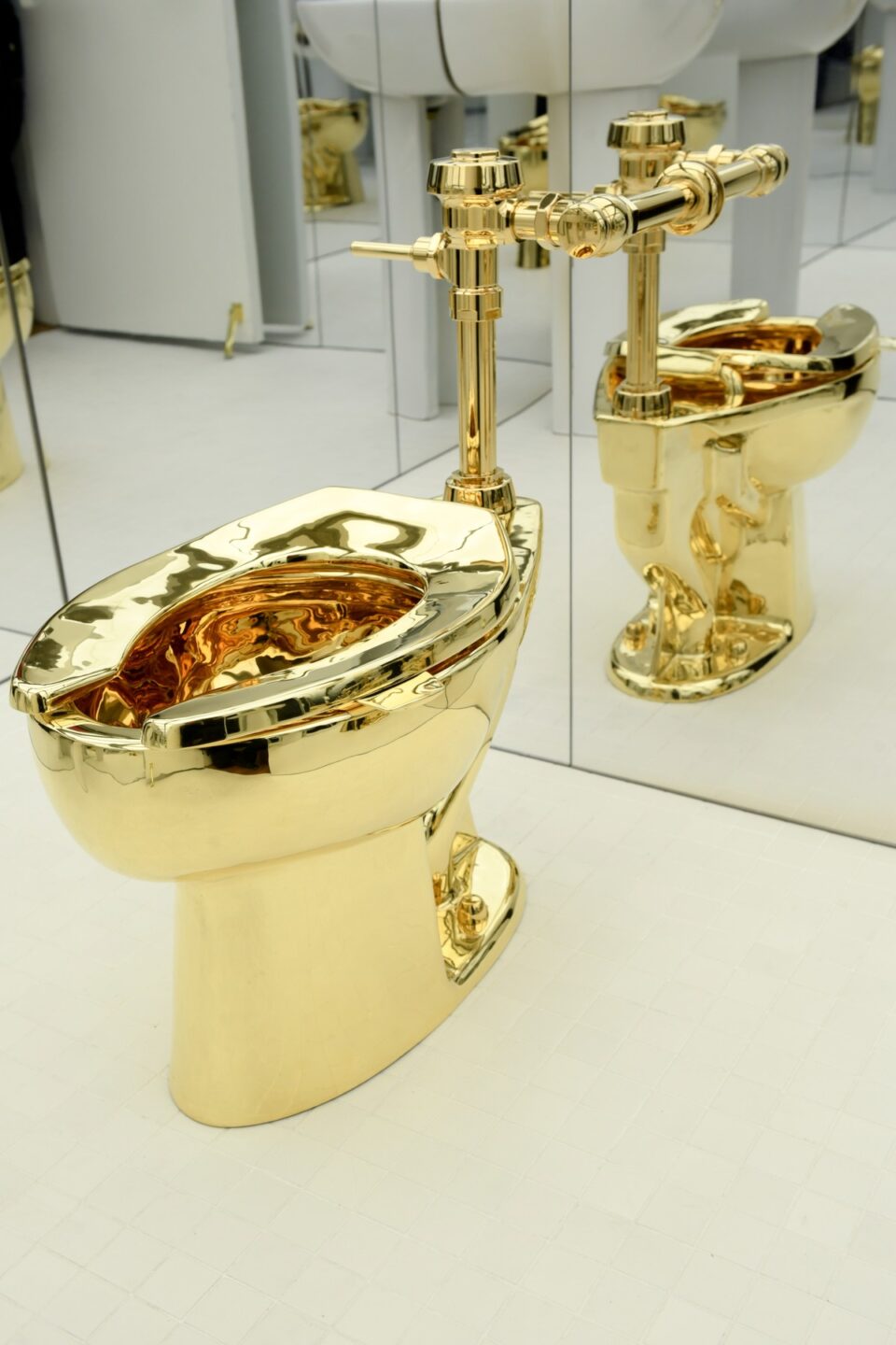 O operă de artă inedită, un vas de toaletă din aur de 18 k, funcțional și cântărind 100 de kilograme, dispărea dintr-o expoziție din Anglia, în 2019. Două persoane au fost condamnate la închisoare în acest caz, autoritățile bănuind că obiectul a fost topit și vândut pe bucăți. Acum, un vas de toaletă identic și creat de același artist – cel care a câștigat milioane de dolari cu o banană lipită pe perete – va fi vândut într-o licitație internațională la New York, prețul de pornire fiind zece milioane de dolari.