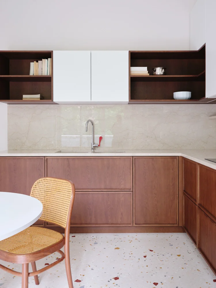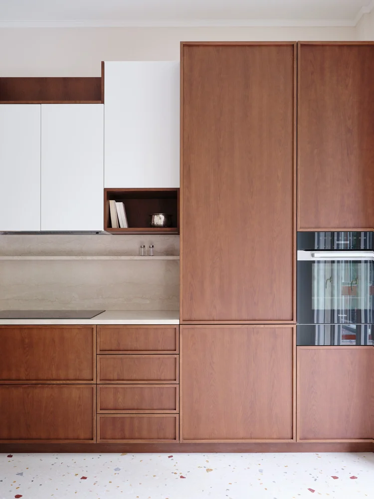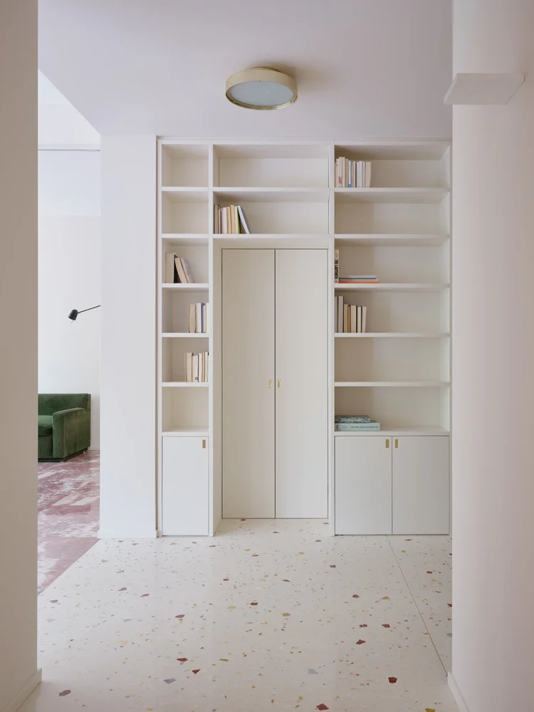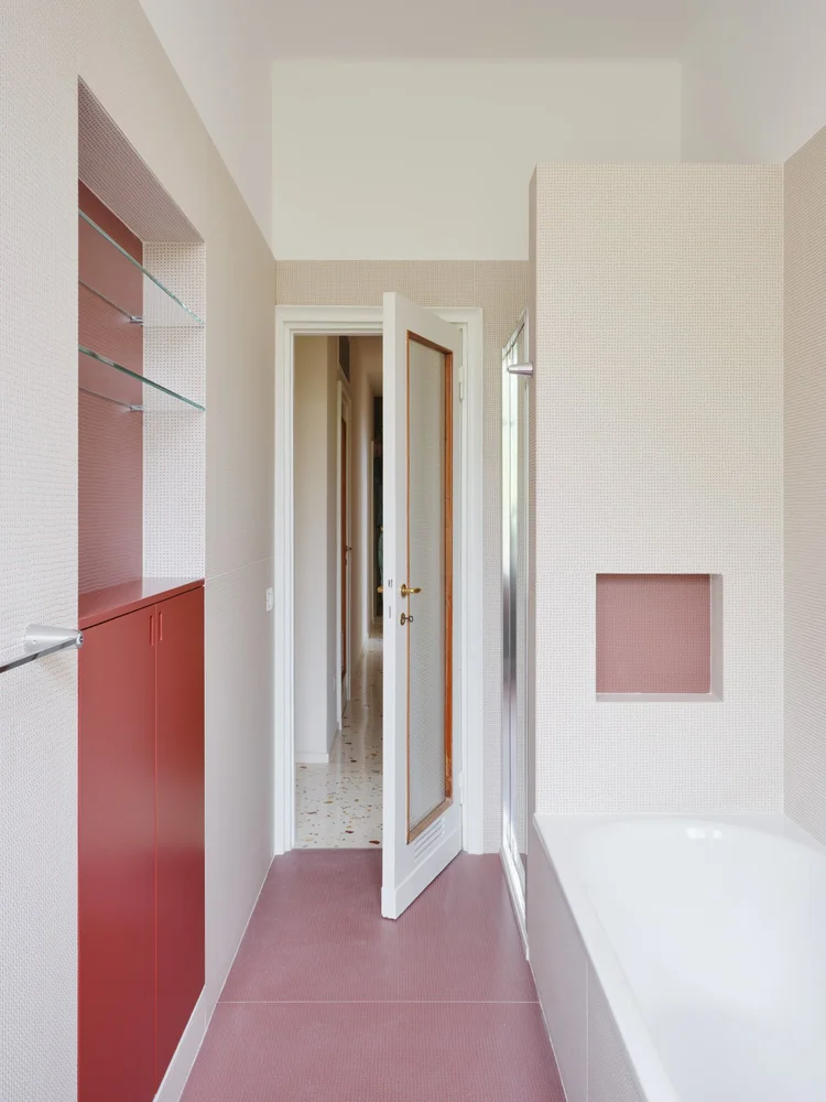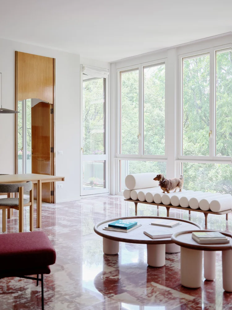 Acest apartament de lux de 250 de metri pătrați se află într-o clădire construită în anii 1960, într-o zonă elegantă a orașului Milano. Cu ferestre mari specifice perioadei mid-century, apartamentul a fost renovat într-o formulă care menține o parte din finisajele inițiale, completate cu o pardoseală din marmură care face legătura între trecut și designul contemporan. Renovare în jurul pieselor care vorbesc despre istoria casei Încă de la început, legătura emoțională a proprietarului cu locuința a influențat multe dintre alegerile făcute de designerii de la Valencia Biscottini, care s-au ocupat de proiect. Cel mai relevant exemplu este pardoseala din living, realizată din marmură Rosso Francia și care, în loc să fie înlocuită, a fost păstrată și pusă în valoare. Mai mult decât atât, a devenit punctul de plecare pentru noua pardoseală din terrazzo, adăugată în timpul renovării și gândită ca o punte între trecut și prezent. Un alt detaliu cu valoare sentimentală îl reprezintă ușile din lemn desenate de bunicul proprietarului, alt element care a fost reinterpretat în cursul renovării. Detaliile originale au fost readuse la viață și integrate în noile uși glisante lăcuite, care separă zona de living de camera TV. Astfel, trecutul nu a fost șters, ci adaptat într-o formă actuală. Intrarea în apartament se face direct din lift, iar primul impact este unul puternic. Spațiul este luminos și aerisit, iar pardoseala din terrazzo atrage imediat atenția. Aceasta a fost realizată de Fantini Mosaici, o companie istorică din Milano: pe un fundal bej, desenul prinde viață prin mici bucăți de marmură în nuanțe de Rosso Francia, Giallo Siena și Bardiglio gri-albăstrui. Fiecare piesă a fost aleasă și montată individual, iar rezultatul aduce un material tradițional într-o zonă modernă și sofisticată. Pentru a echiibra bogăția vizuală a pardoselii, pereții au fost păstrați într-o nuanță neutră – un bej cald, ușor prăfuit, care, în lumina naturală revarsată prin ferestrele generoase, capătă accente discrete de roz. Aceeași finisare a fost folosită și pentru bibliotecile realizate la comandă în zona de intrare. În interiorul uneia dintre ele se ascunde o ușă dublă care duce către o mică baie pentru oaspeți. Acest spațiu surprinde prin pereții acoperiți cu un email roșu intens, o alegere cromatică ce face trimitere la marmura Rosso Francia, dar într-o interpretare mai vibrantă și actuală. Pardoseala din terrazzo continuă în holuri, bucătărie și zonele de serviciu, asigurând unitate vizuală. În dormitoare, aceasta este înlocuită de un parchet elegant din stejar masiv, montat în model italian „spic”, completând cu o componentă mai caldă, primitoare eleganța pardoselii minerale. Un element spectaculos al zonei de living îl reprezintă ferestrele ample, de la podea până la tavan, care oferă vedere către o grădină plină de copaci. Lumina naturală joacă un rol esențial în definirea atmosferei, punând în valoare texturile și culorile alese. Mobilier cu vibe iconic, într-un cadru cu rezonanță Mid-Century Și mobilierul urmează același principiu al continuității și reinterpretării. Au fost alese piese de design cu istorie, dar adaptate prin culori și finisaje contemporane. În living, canapeaua Marenco – un icon al mobilierului italian din anii 70 – se îmbracă în galben. Lângea ea, canapeaua albă Five to Nine proiectată de Studiopepe pentru Tacchini este un alt omagiu adus designului italian. Alături de ele, scaunele de dining, biblioteca sau accente albastre completează schema funcțională a mobilierului. Paleta cromatică este luminoasă și proaspătă, cu tonuri calde de galben, albastru pal, roz și marsala care continuă roșul natura al pardoselii din marmură, oferind întregului apartament un aer rafinat, dar prietenos. Foto: Francesca Iovene CITEȘTE ȘI: Arhitectura dualității la Poznan: două lumi într-o locuință cu vibe retro Într-o vilă din 1822, contemporanul capătă un nou sens în amenajare Diversitatea urbană și pasiunea pentru Maroc, reflectate într-o vilă de lux cu influențe etnice Distribuie articolul pe: