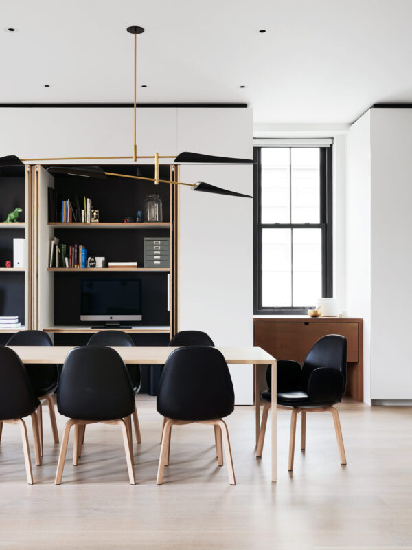 Un penthouse de 460 mp din cartierul new-yorkez Tribeca nu mai păstrează nimic din aspectul impersonal al depozitului care s-a aflat cândva acolo. Locul i-a fost luat de o amenajare aerisită, în culori neutre calde și cu accente de lemn roșcat. Acest proiect, dezvoltat de arhitecții de la Min Design, este o reinterpretare a unui penthouse care a luat naştere dintr-un depozit din 1884 din New York. Lucrând îndeaproape cu proprietarul, designul reflectă o abordare ușoară, în contrast cu grinzile și coloanele grele din lemn aflate anterior în locație, pentru a crea o casă liniștită și extrem de funcțională, pentru o familie cu copii mici și adaptată la viața de zi cu zi. Arhitecții au creat un design discret și sofisticat, utilizând materiale durabile și culori minimaliste. În contrast cu vechea structură, paleta de culori actuală oferă un fundal adecvat pentru opere de artă și viața de zi cu zi. Scara: din provocare devine element de design interior Scara a reprezentat o provocare din cauza dispunerii deplasate a suprafețelor și a unor contratrepte originale, cu balustrade din sticlă, care păreau străine apartamentului. Neputând reconstrui complet scaracu materialele originale, au recunoscut în schimb potențialul acesteia de a aduce lumină și punct de interes apartamentului. Tratate ca o singură formă, plăcile de oțel pliate definesc scara, captând și sculptând lumina zilei prin podele. Spațiul rezidual tipic al scării a devenit o ascunzătoare jucăușă sub scară, construită din placaj, cu perne și spațiu de depozitare pentru jucării mici și cărți. Partea de sus a scării se termină cu ferestre mari cu vedere spre terasa de pe acoperiș, completând acest refugiu senin din oraș. Varietate de texturi și materiale, într-o paletă cromatică controlată Nișe, coloane și scafe au fost ascunse în mobilier pentru a oferi un spațiu elegant din punct de vedere vizual. Rafturi adânci din lemn de brad Douglas au fost încorporate în peretele șemineului, oferind textură și volum zonei de living. Rafturile din lemn și oțel scot în evidență fereastra bucătăriei, în timp ce plăcile mari negre, frumos texturate, accentuează detaliile acestei palete controlat construite. O varietate de texturi şi materiale se integrează în paleta de culori restrânsă și elementară. Corpurile încorporate sunt parte din pereții îngroșați care ascund structura, oferind un loc liniștit pentru artă, lumină și activități familiale. Rafturi din lemn încastrate împodobesc camera de zi. Mobilierul și iluminatul interior au fost alese de proprietar sǎ-i reprezinte stilul. Lumina naturală animă pereții și spațiul pe tot parcursul zilei. Rafturi adânci sunt construite în peretele îngroșat al șemineului pentru cărți și decorațiuni, care imprimă spațiului amprenta personală atât de importantă într-o casă. Continuând cu funcționalitatea ascunsă, punctul focal al dormitorului principal este reprezentat din rafturile din lemn cu un panou rulant mare, care ascund un televizor, precum și coloane și uși mecanice care creează o cameră vizual aerisită. Sunt introduse note retro prin lemnul cu tentă roșiatică, care contrastează cu albul de fundal. Zona de luat masa este ancorată de un perete plin de dulapuri care ascunde trei birouri pentru temele copiilor, obiecte de artizanat și depozitare. Ușile glisante se deschid pentru a dezvălui un interior laminat negru delicat, cu margini din placaj. Restul încăperilor continuă logica simplistă, construind luxul prin spațialitate și prin calitatea finisajelor. Proiectul de amenajare, finalizat în 202, a fost premiat în cadrul mai multor competiții de design, din momentul lansării. Foto: MinDesign.com Distribuie articolul pe: