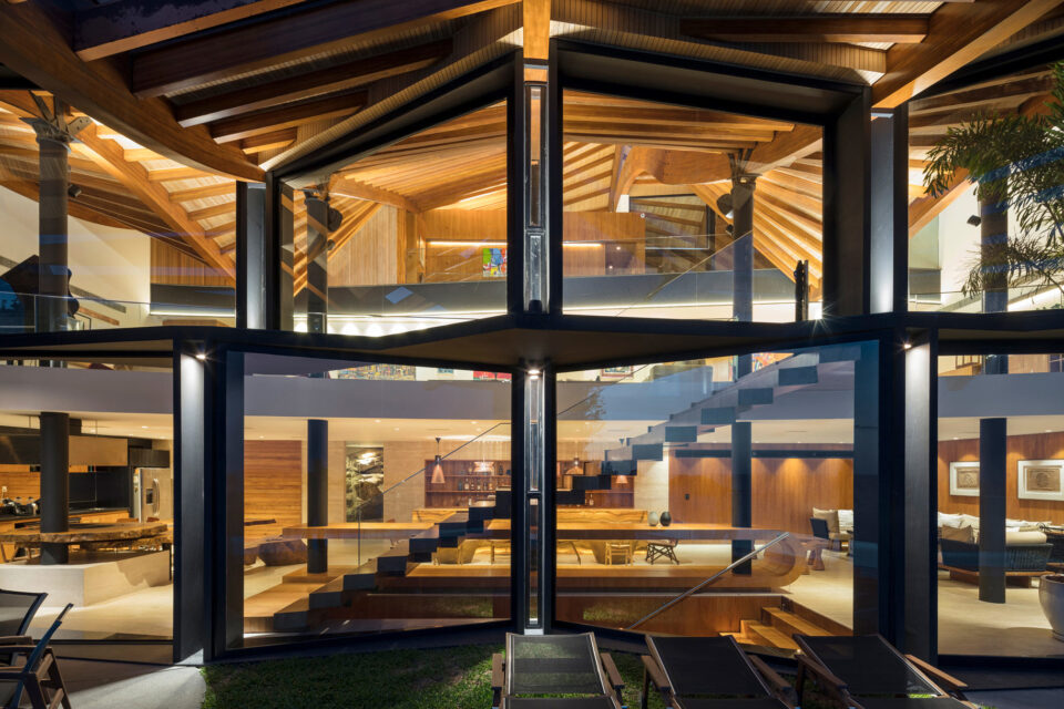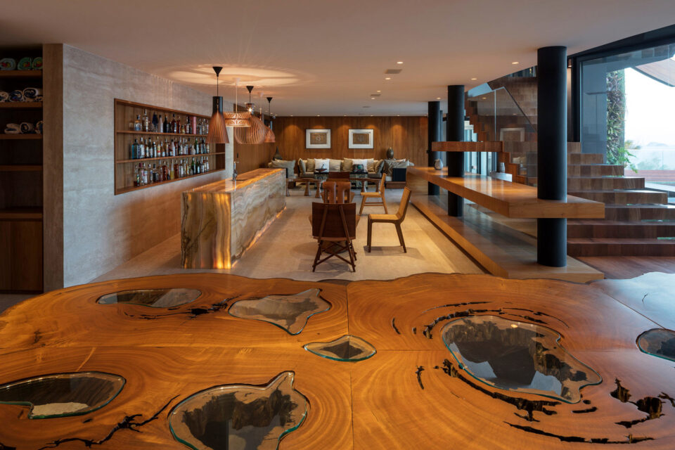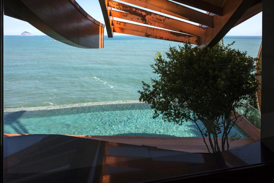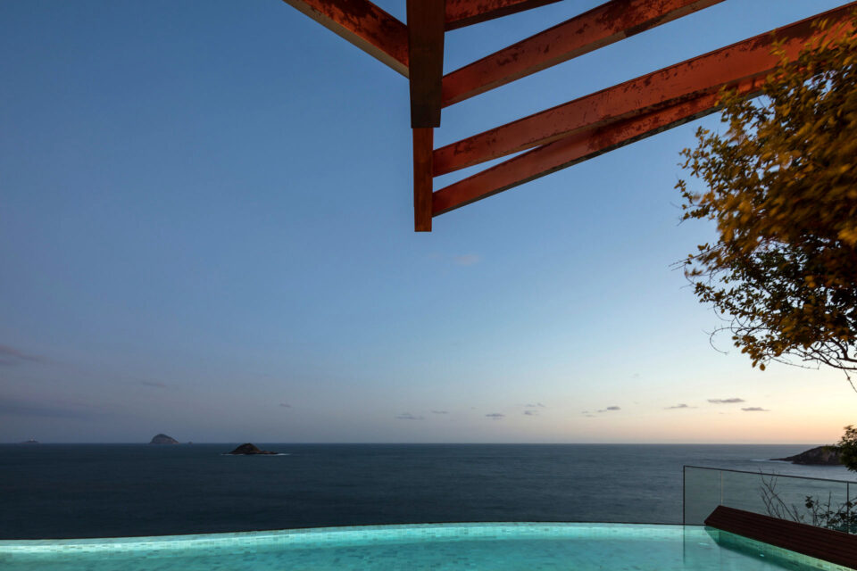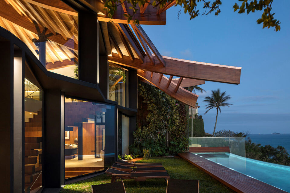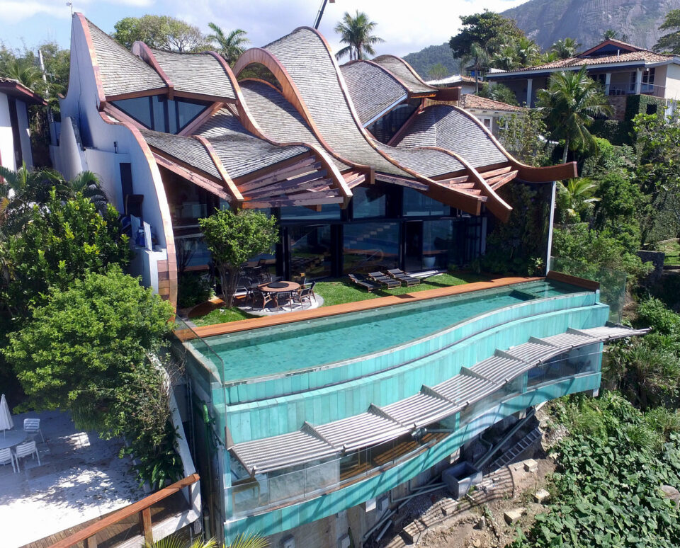 În Rio de Janeiro, un proiect de arhitectură organică este suspendat de malul de granit la 55 m deasupra oceanului. Este o reședință de o mie de metri pătrați, cu formă inspirată de valurile spre care se deschide, un exemplu de arhitectură tropicală contemporană care îmbină poetic forma, peisajul și tehnica.